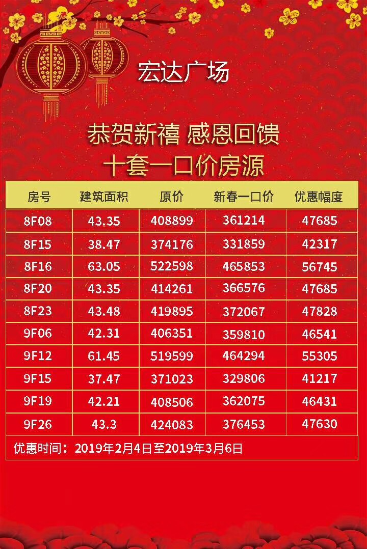 优惠二:由宏达战略合作单位介绍成交的VIP客户可享受赠送两年物业管理费!