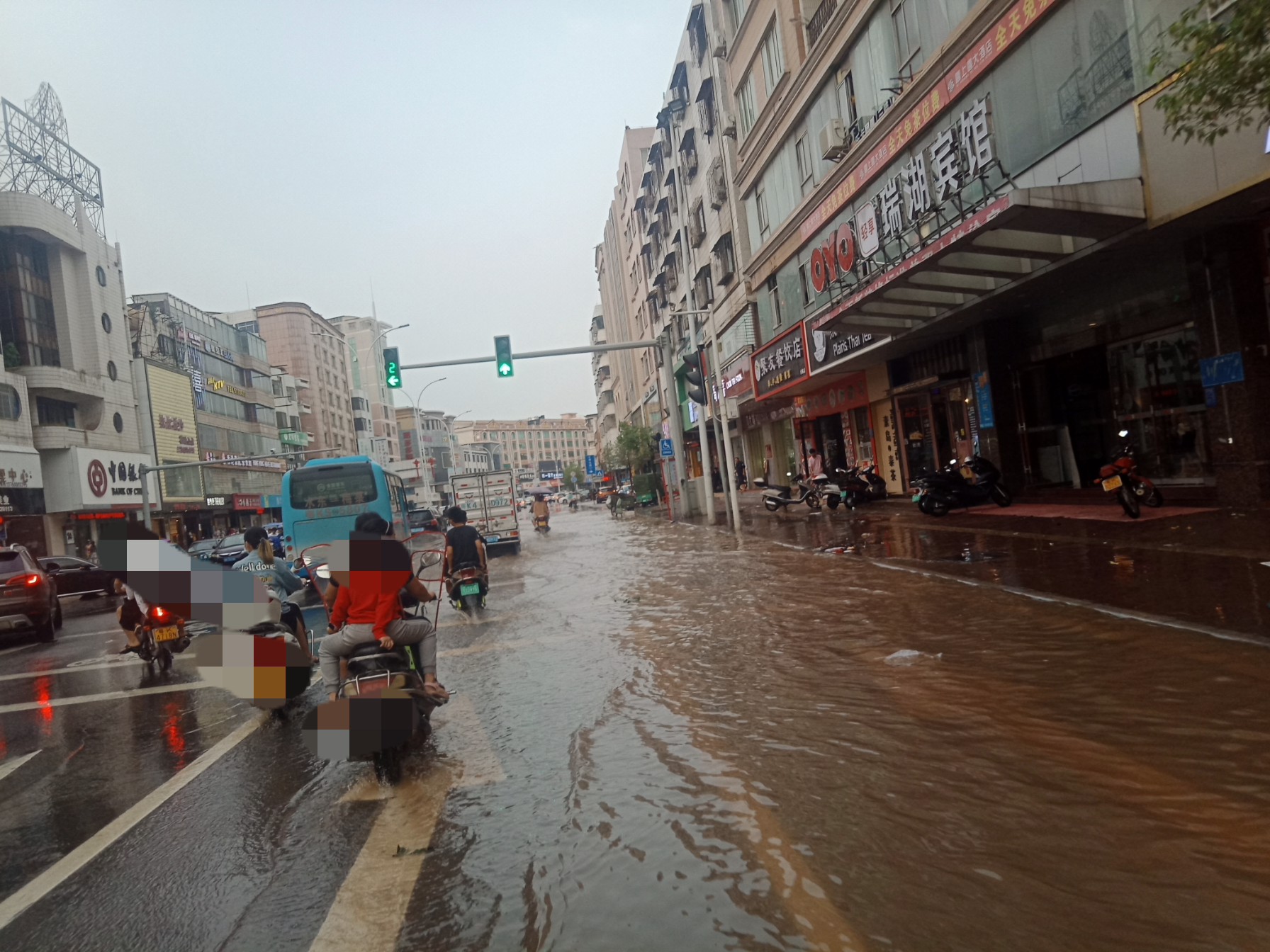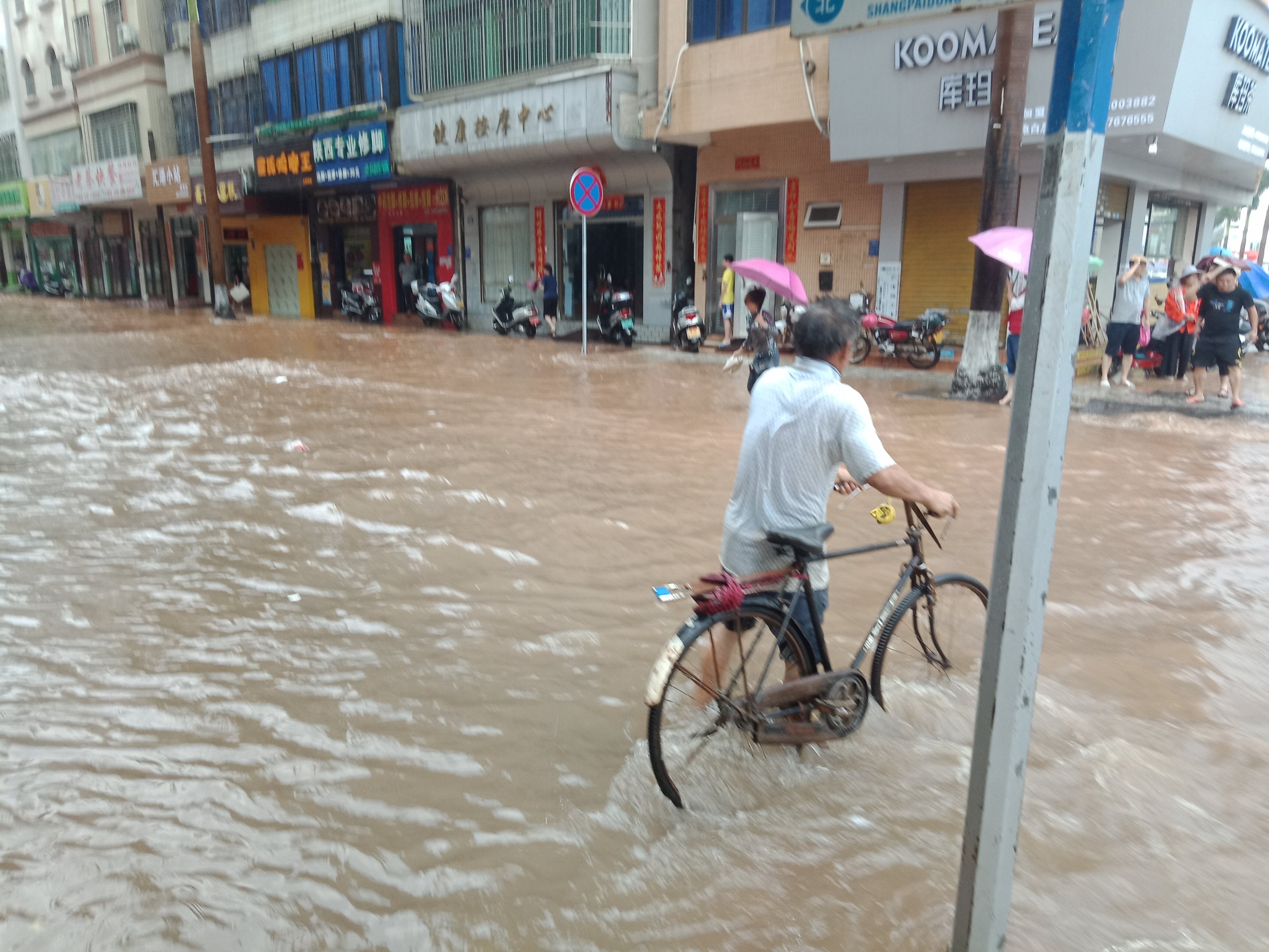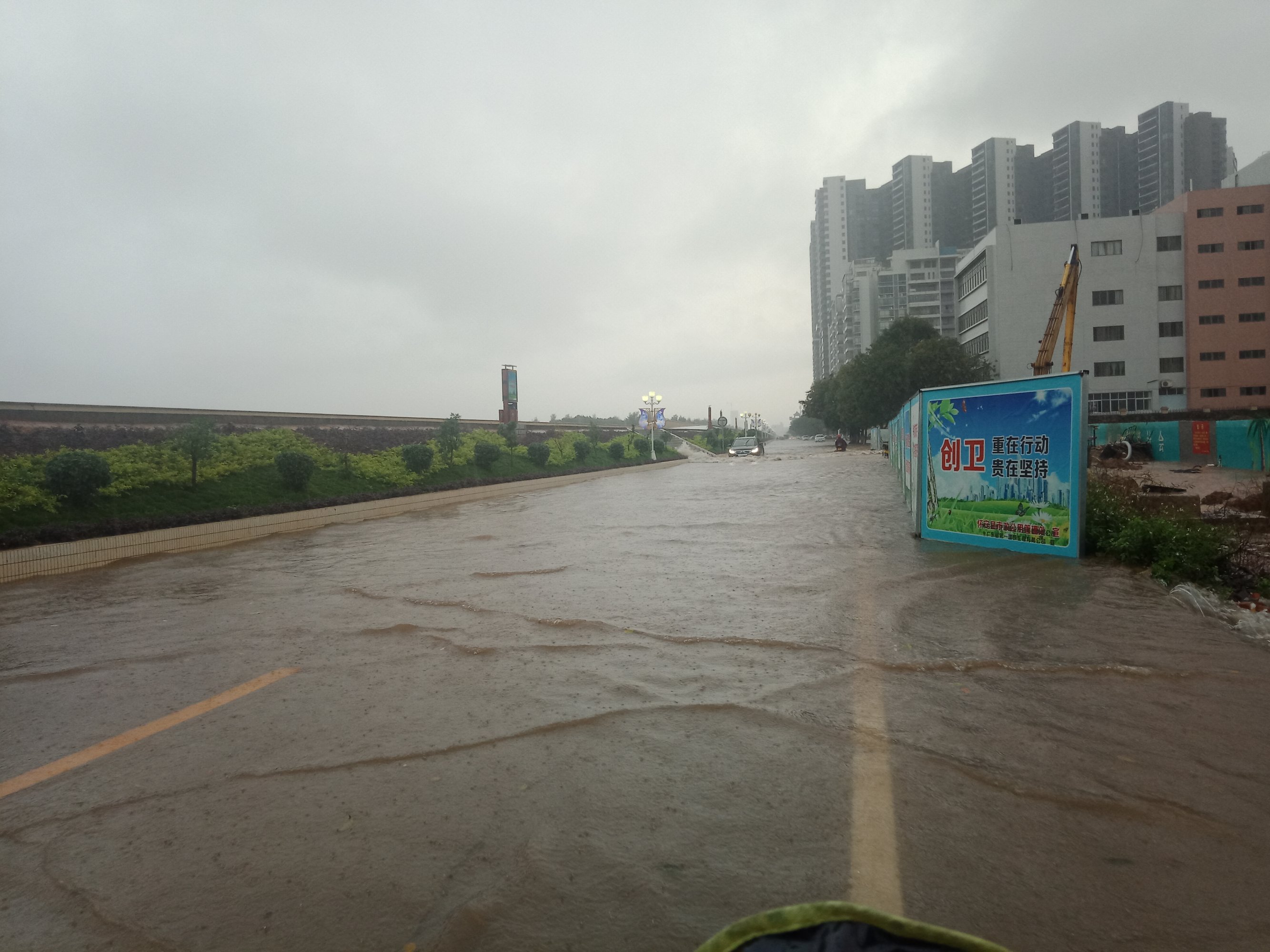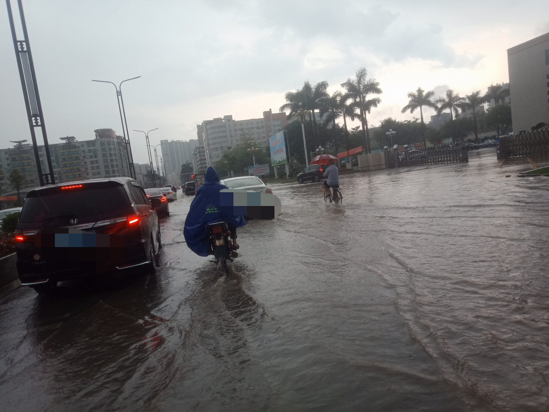 东湖与上排~路口~排水有点急,有向东湖这边排水(上次也发过)~有些摩托不小心过给拌倒~ 还有海滨路两侧小段有水浸~ 还有海堤路小段有水浸~ 政法路小段~还有解放街小段~新湖二~还有些吧?没一一去看~车况车速好点还勉强可冲过,不过还是建议小心点~摩托就算突然死火可推着走~