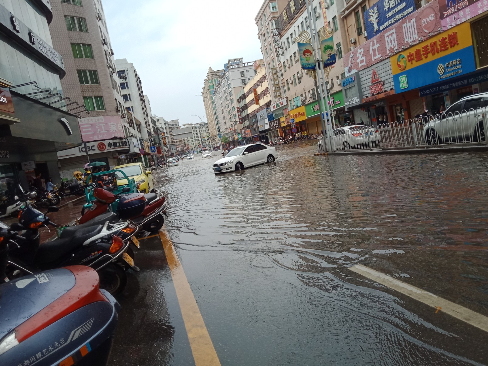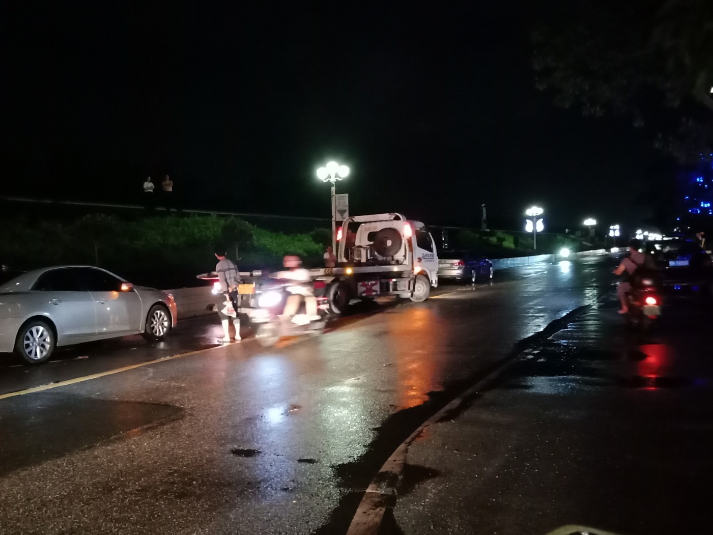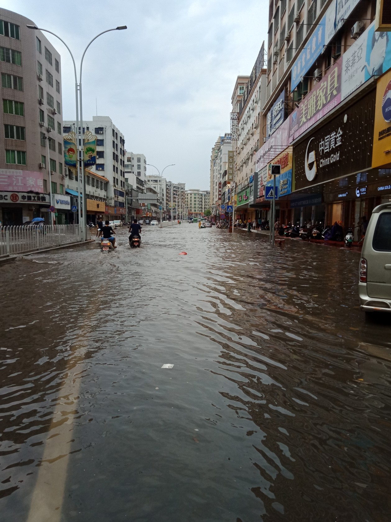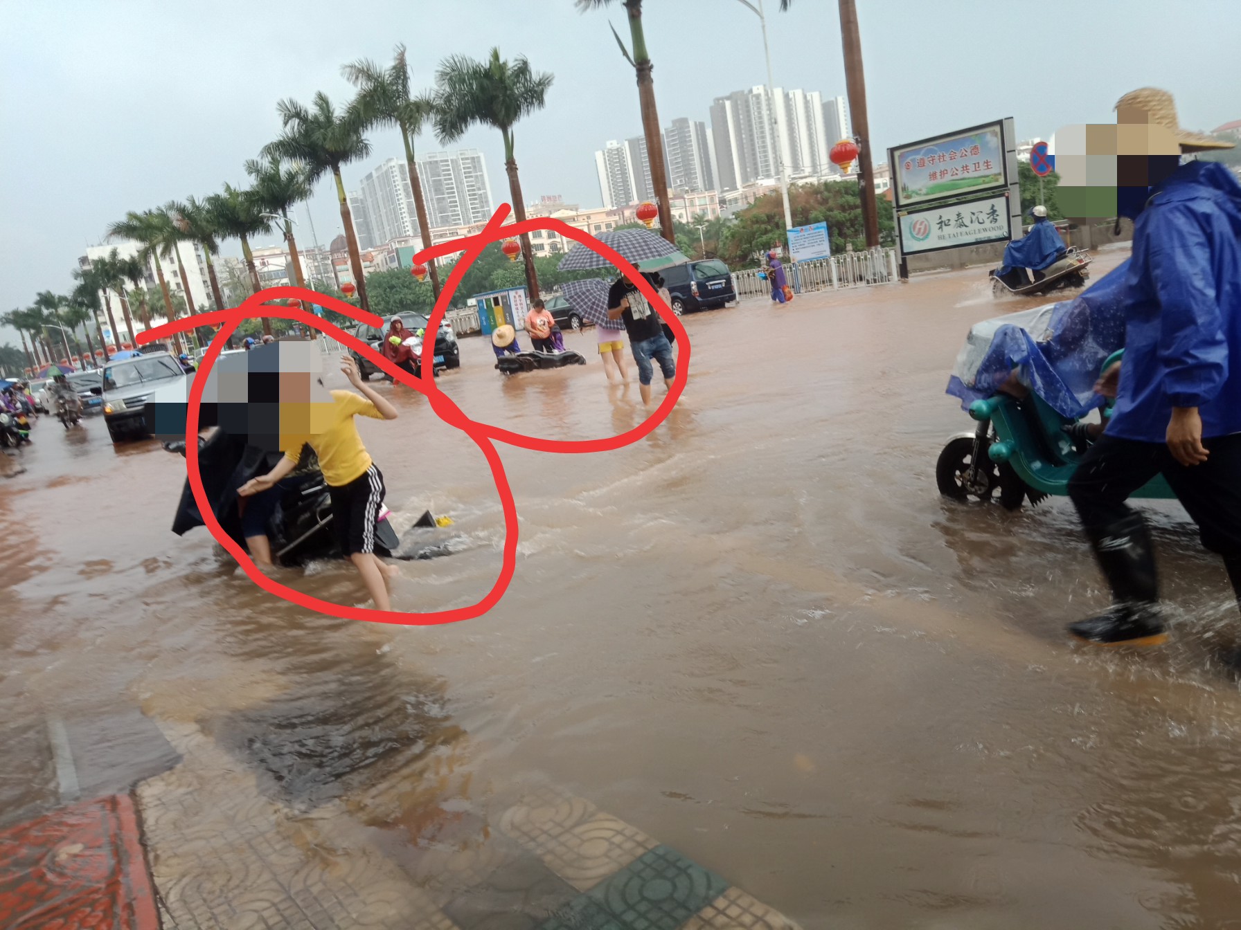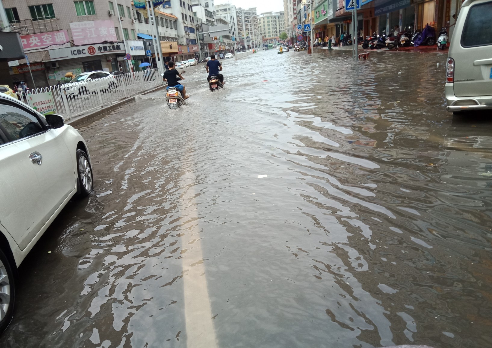 东湖与上排~路口~排水有点急,有向东湖这边排水(上次也发过)~有些摩托不小心过给拌倒~ 还有海滨路两侧小段有水浸~ 还有海堤路小段有水浸~ 政法路小段~还有解放街小段~新湖二~还有些吧?没一一去看~车况车速好点还勉强可冲过,不过还是建议小心点~摩托就算突然死火可推着走~