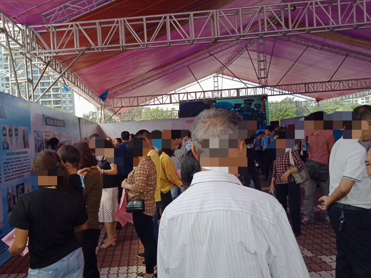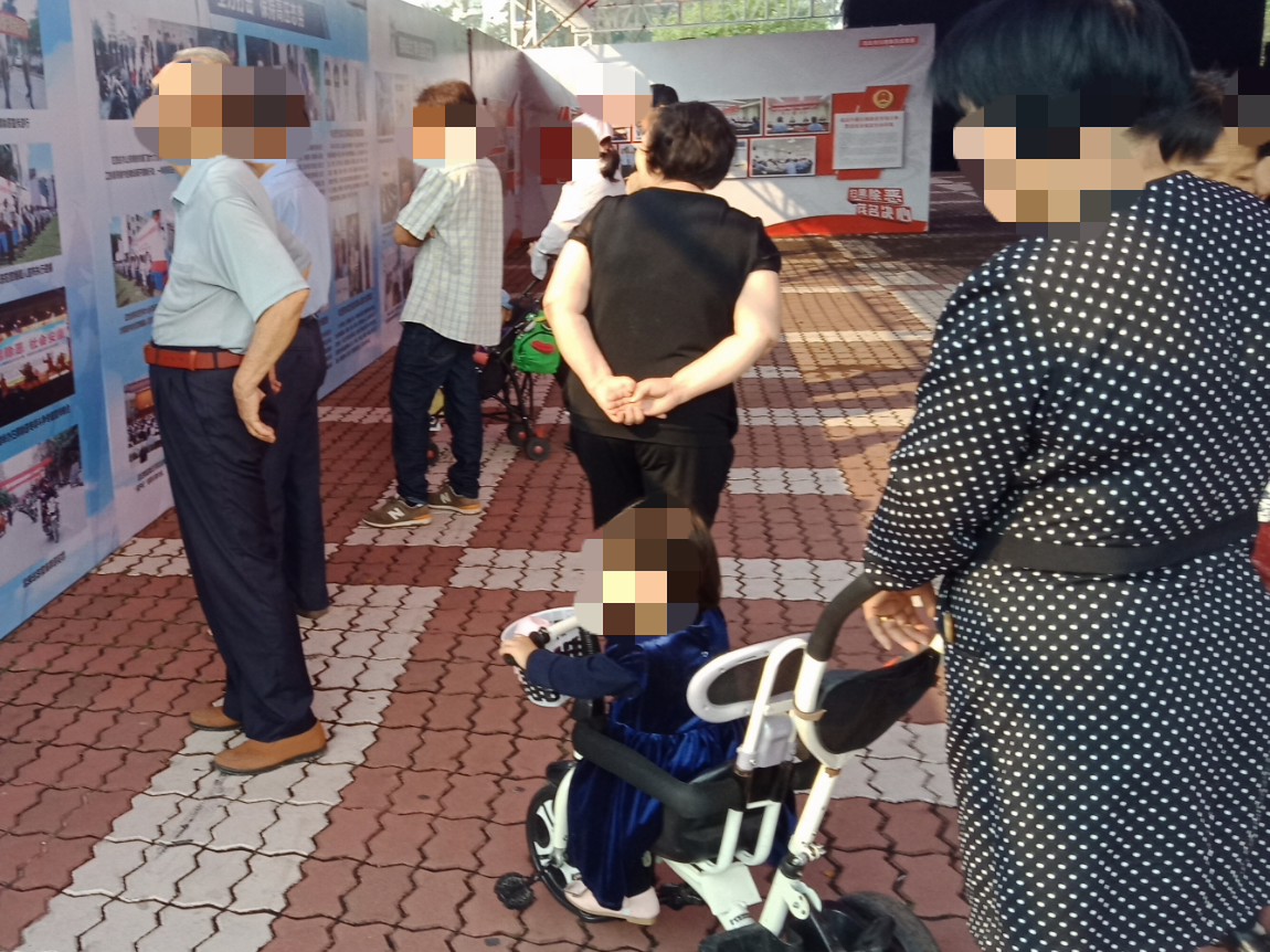 听里面圹音器在讲解下~听不清楚,好像说展示二三天???过后有些应是领导公仆的在巡看~不过瓦只关注群体互动~
