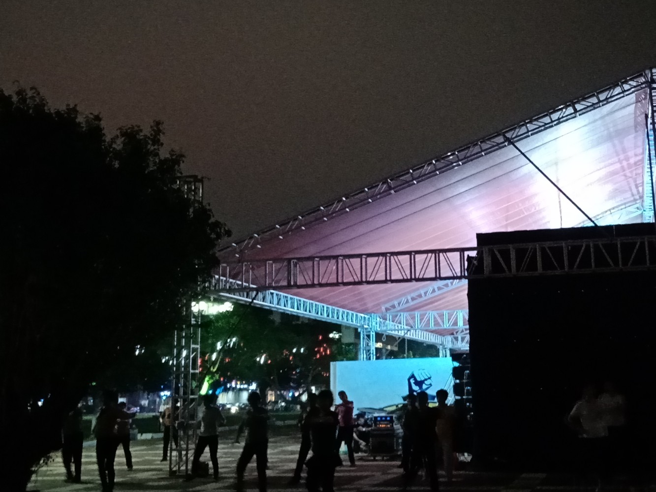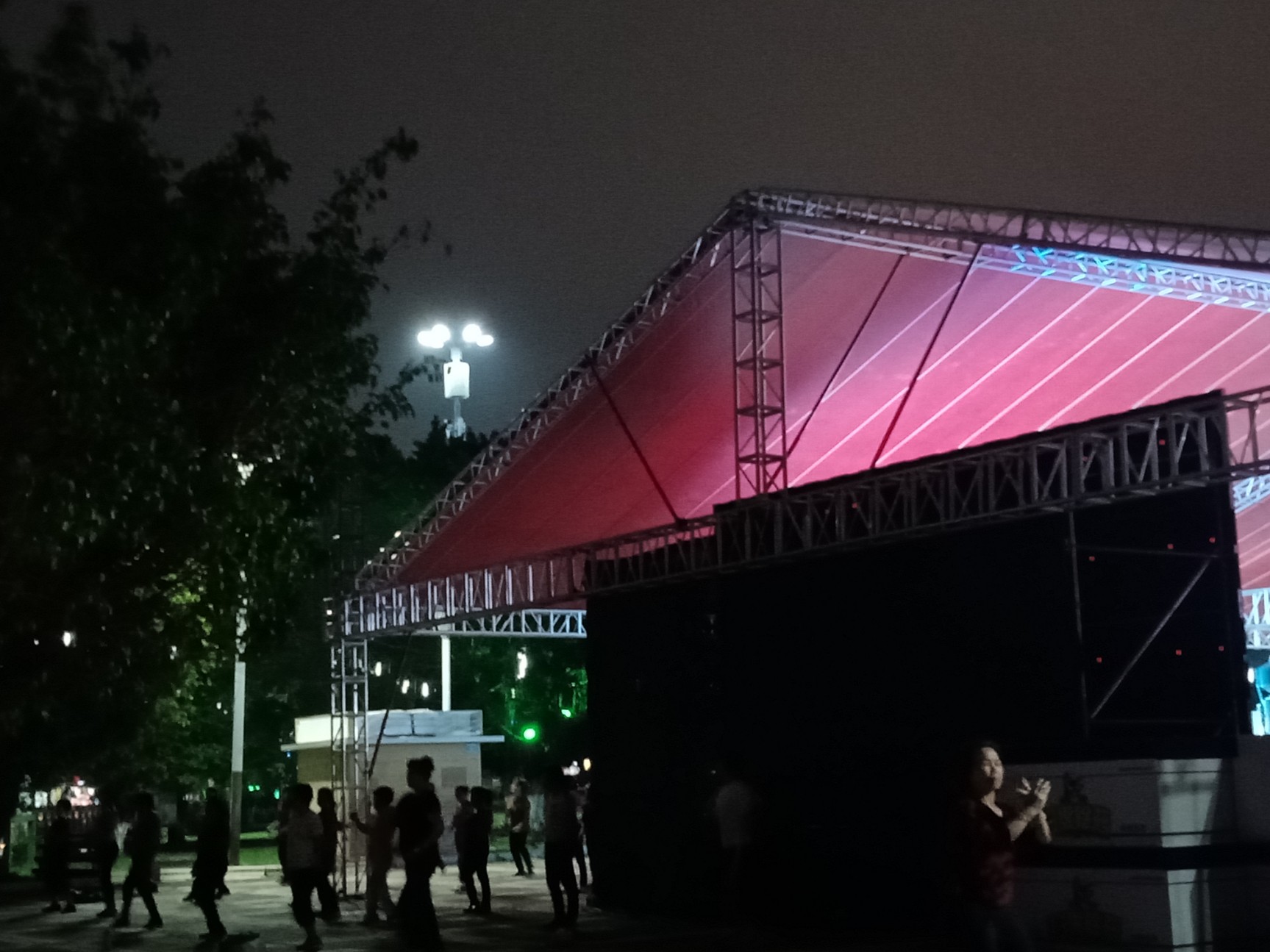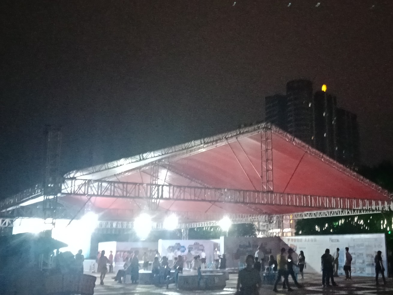 虽然里面展品诂是白天才展出吧?但那投影与展片依在~群众有出有入~或就想这效果吧?