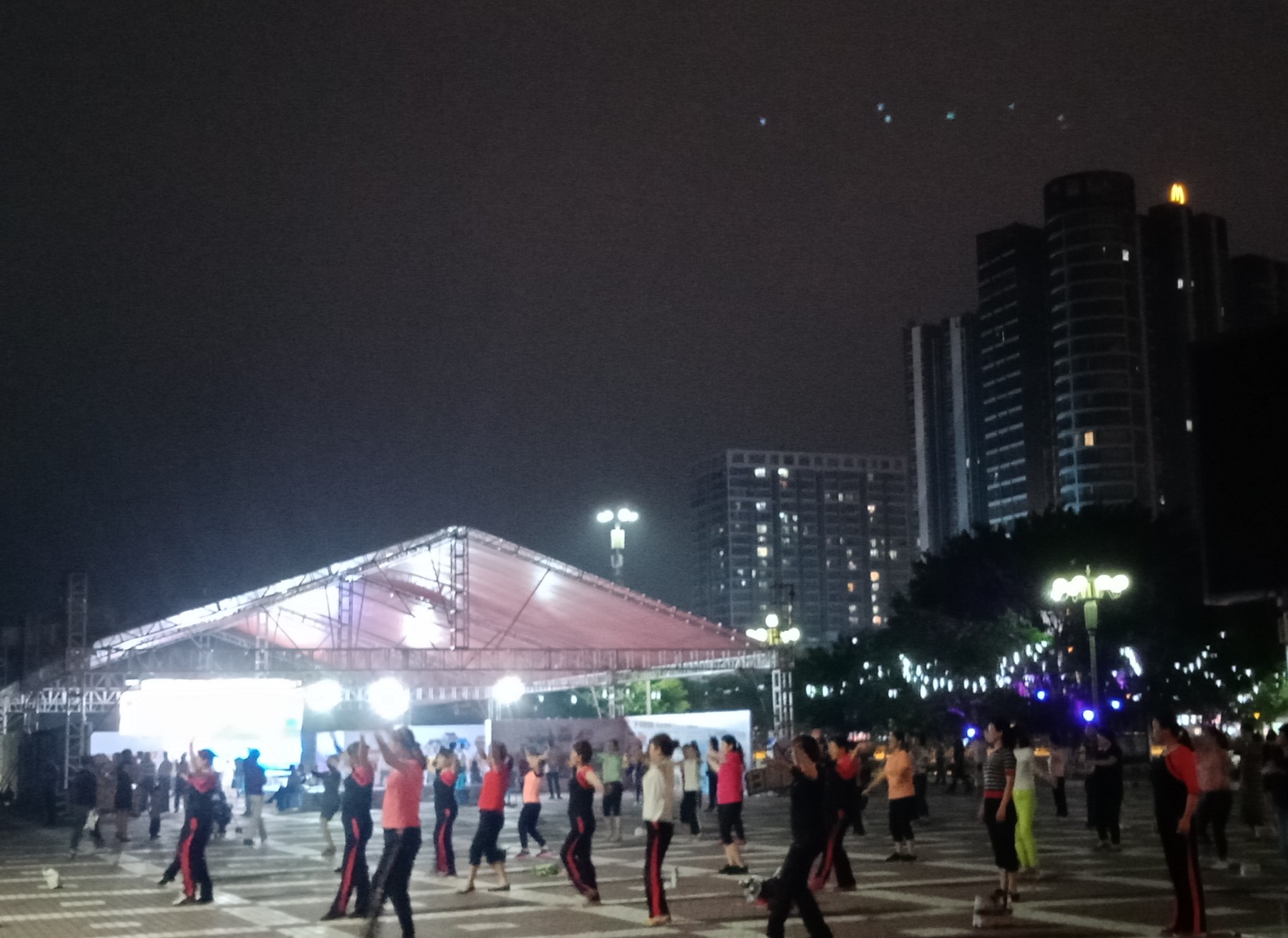 这厉害~广场舞爱好者(瓦为何不叫舞大妈呢,因为也拟见些男士也加入其队伍了:biggrin:),几乎将成个展馆团团包围~