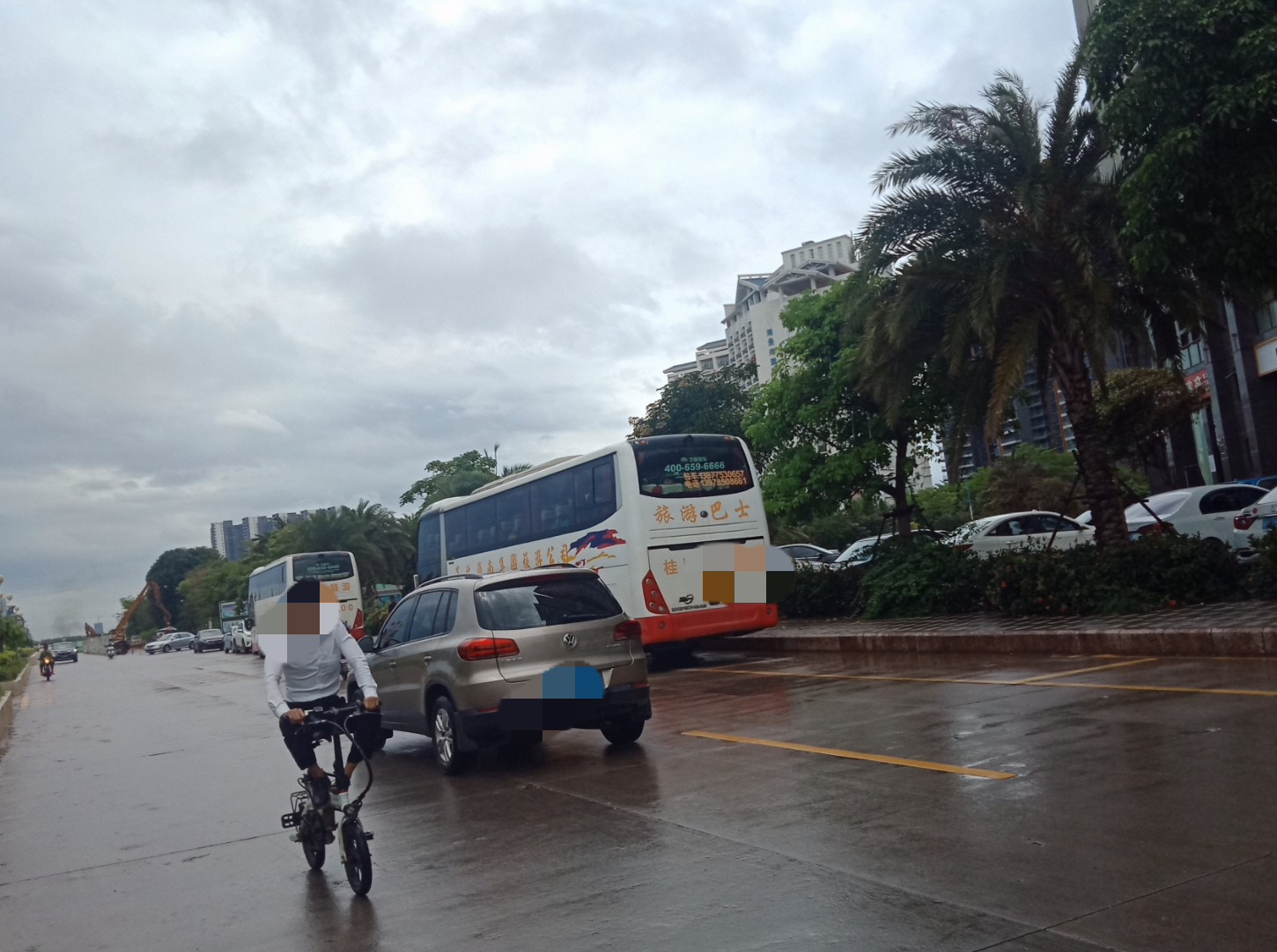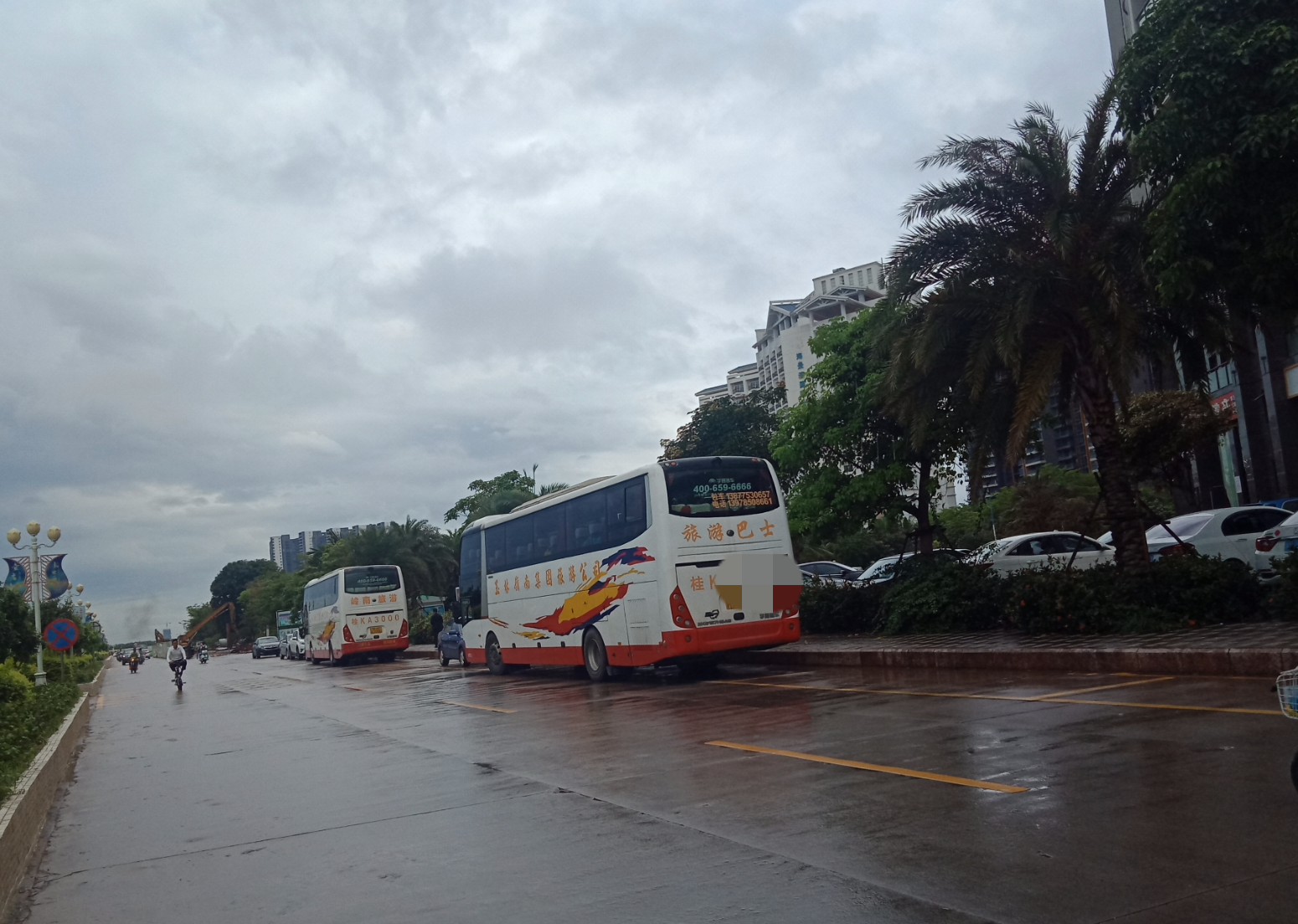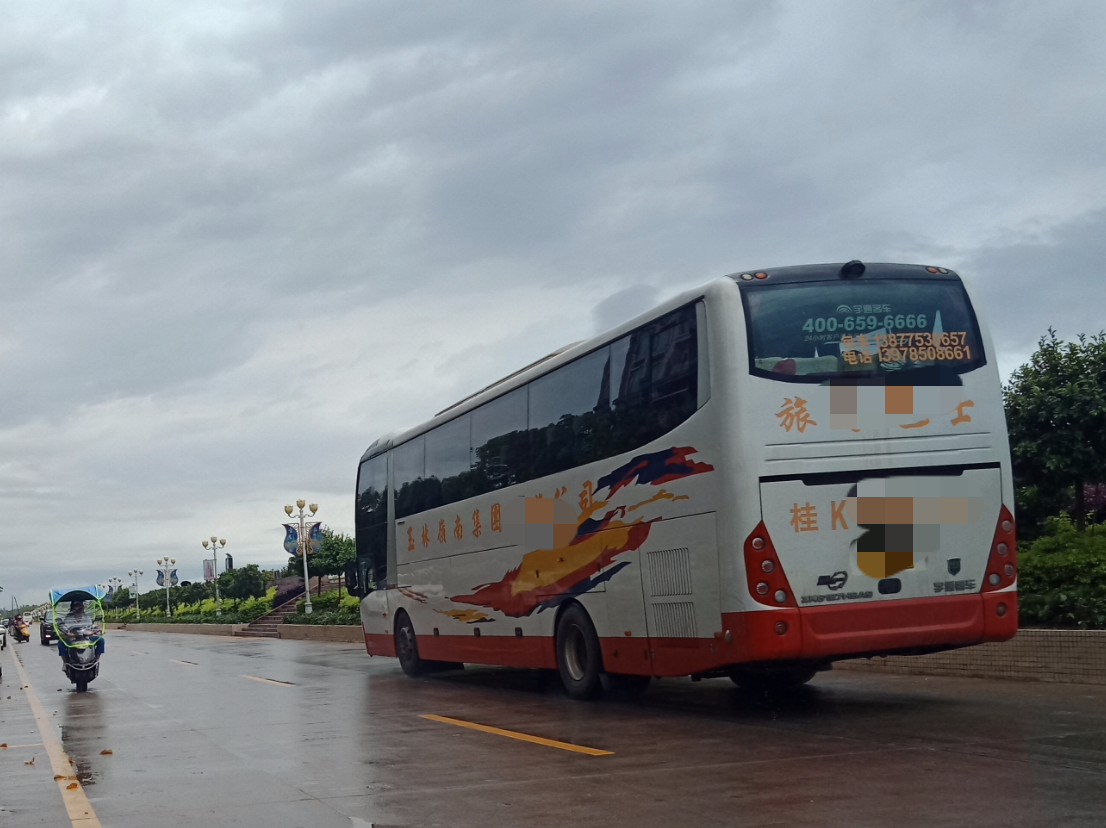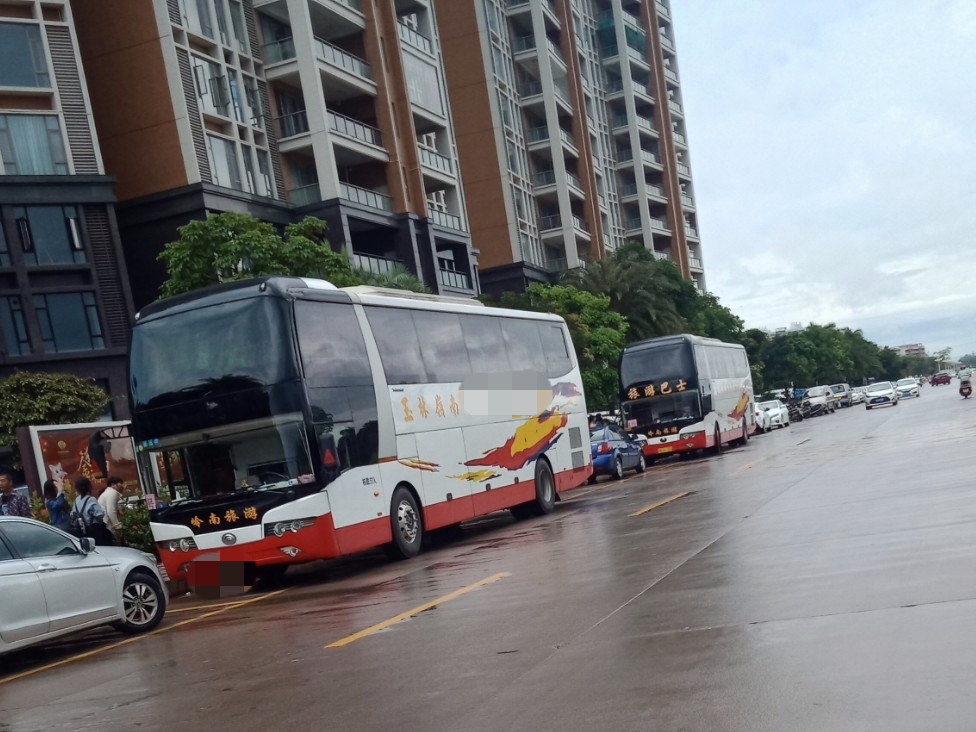 下雨天,海堤路依有旅游大巴的到来~