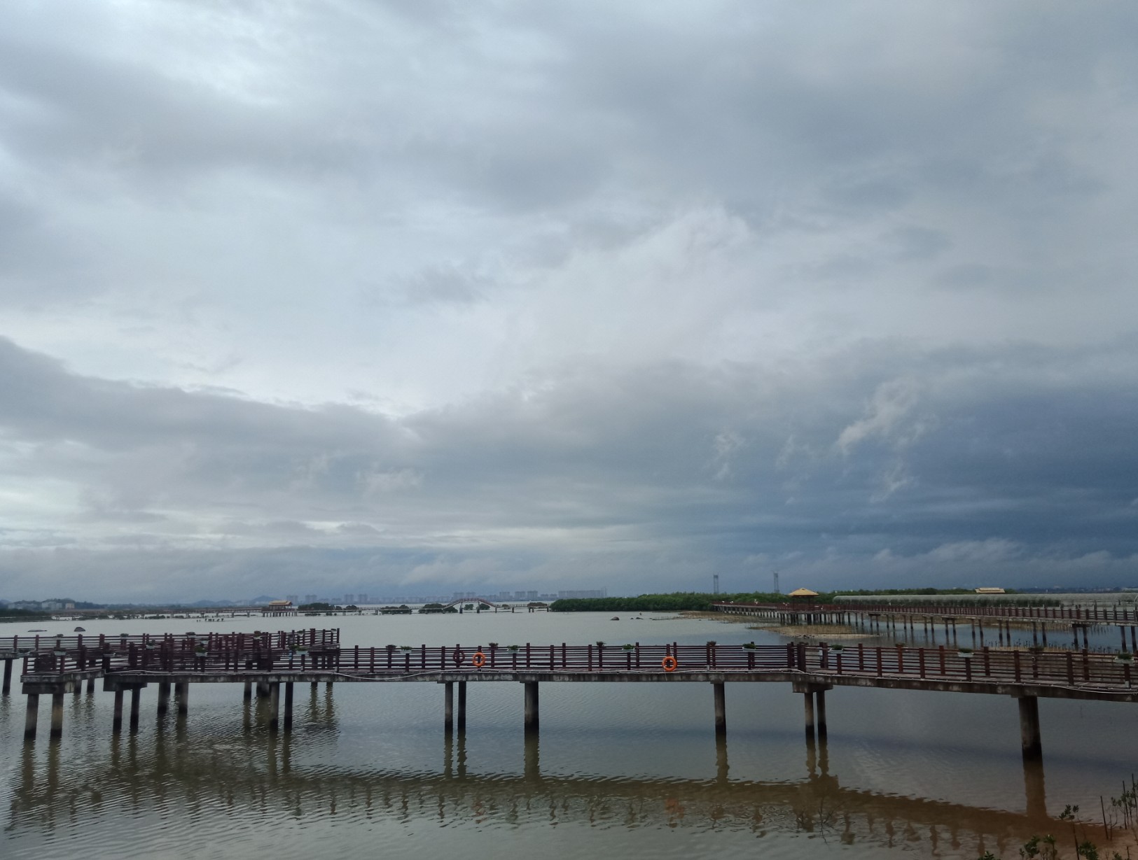 今天下起了雨,海堤栈道依然有旅游大巴的到来…