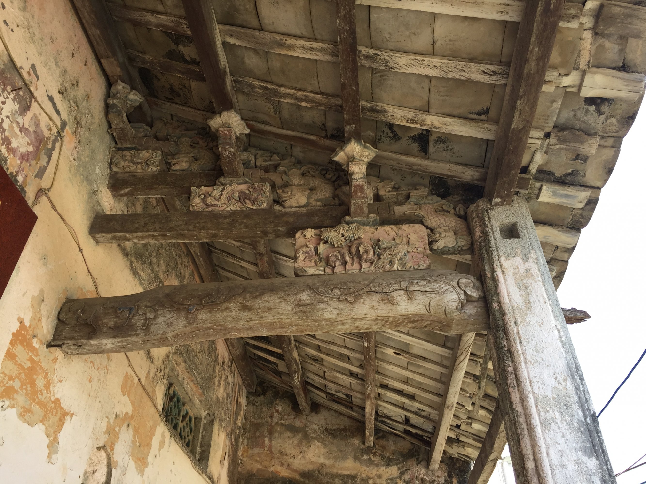 山兜村有间古老的祠堂,目测是明清时期的建筑风格,一共有三座,土改时一座做了学校,这间保持得非常完整,一间分给了村民,村民把祠堂拆了拿砖木去建了新房子,只剩下前排,平时村民在此打朴克休闲,后面的现在做了市场很久了,环境卫生一般般,
