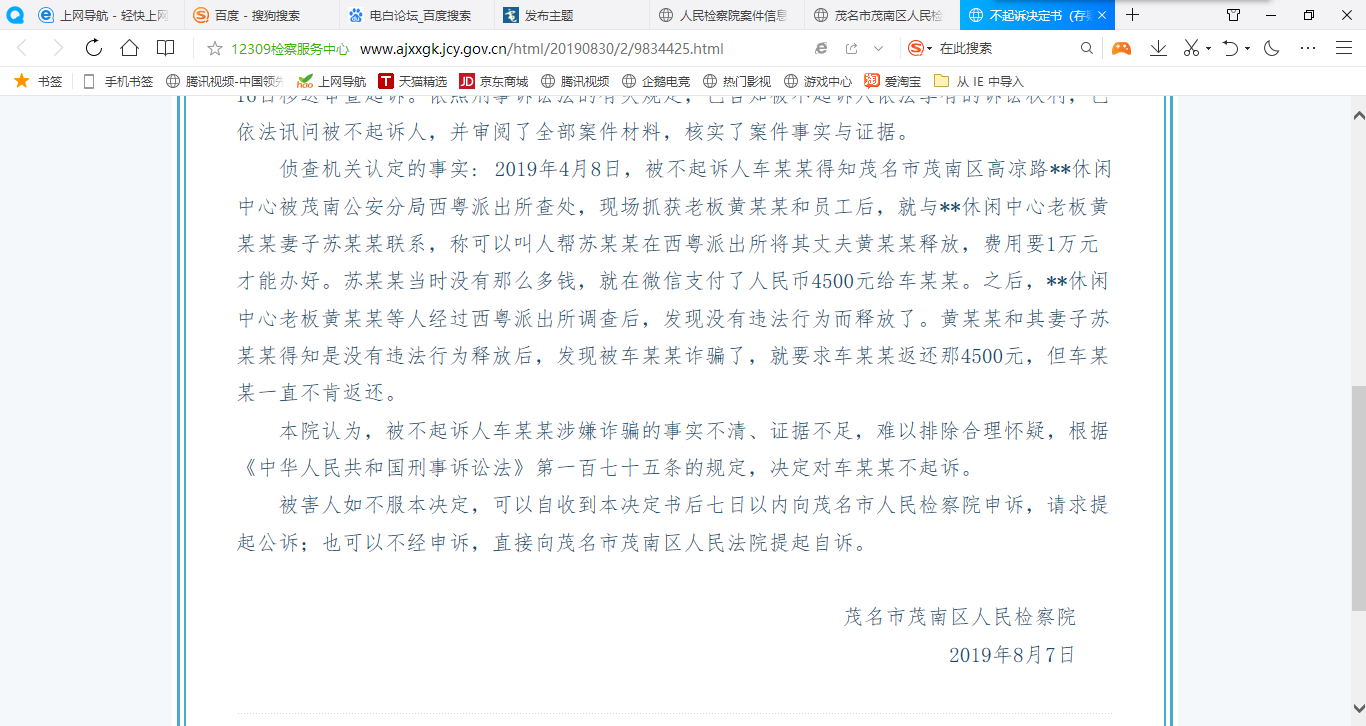 茂南检刑检刑不诉〔2019〕82号