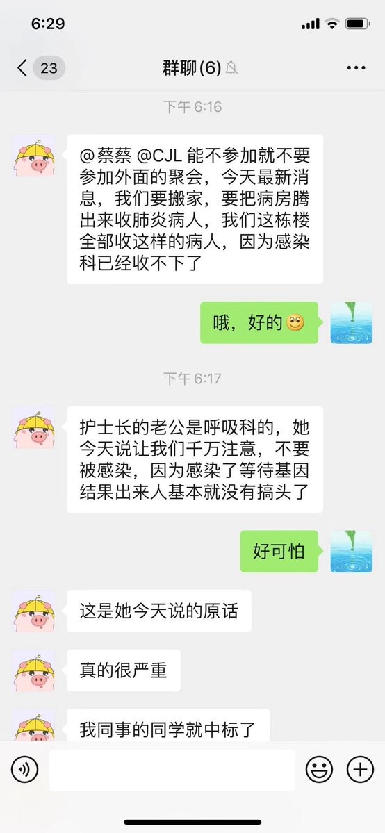 汉 汉鸭 教授 注册 2018-05-19 消息 3,014 反馈评分 400 点数 191 性别 男 2020-01-21 #17 hchcc 说: 与非典一样,人传人,口沫传播。 浏览附件338303 浏览附件338304 浏览附件338305 浏览附件338306 浏览附件338307 点击展开... 实锤了吗?要是真的口沫传播还好,我以为是空气传播,吓死