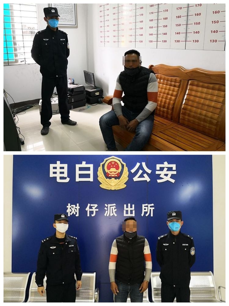 2020年2月1日,电白分局树仔派出所在工作中发现,有人在当地村民的微信群中发布涉疫情的言论,内容大致为:“考虑清楚,海尾都不要去了,是否认识刘屋光星本人,大家认识吗?听说他女儿男朋友是湖北人,现在在家,公安派出所去抓人了,听他女儿说现在发高烧了,病情严重。”