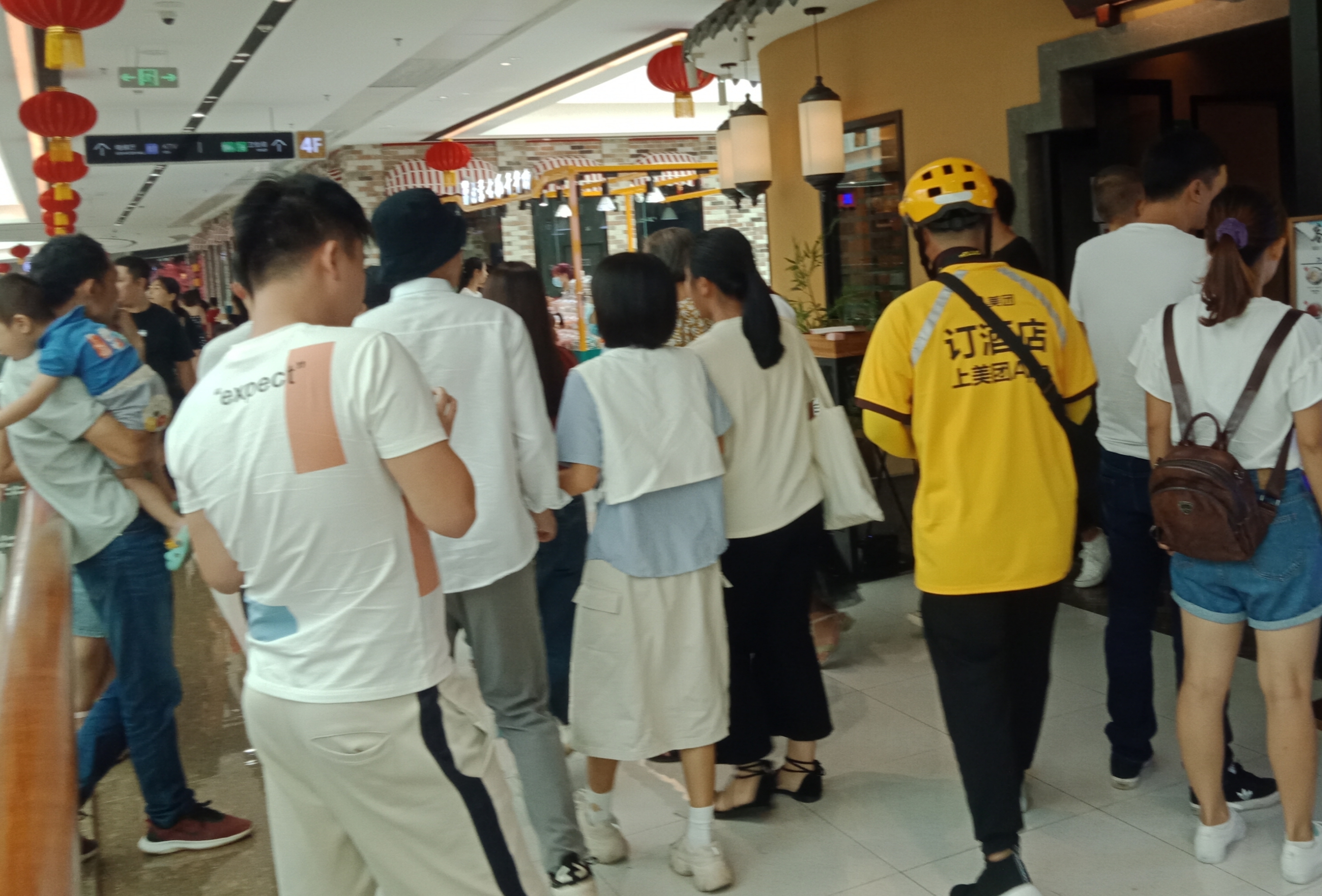 在这下午三点几近四点的时间段,见有好些食店的像是经理部长服务员厨师阿姨等,我感觉像趁店内客人少点时,才坐下一起吃下饭,也不知算是午餐还算是晚餐,看着也挺辛苦的,有看到些在就餐时,如还有客人进来,人手紧点,也就放下碗筷去接待、、、有些店门口贴娉