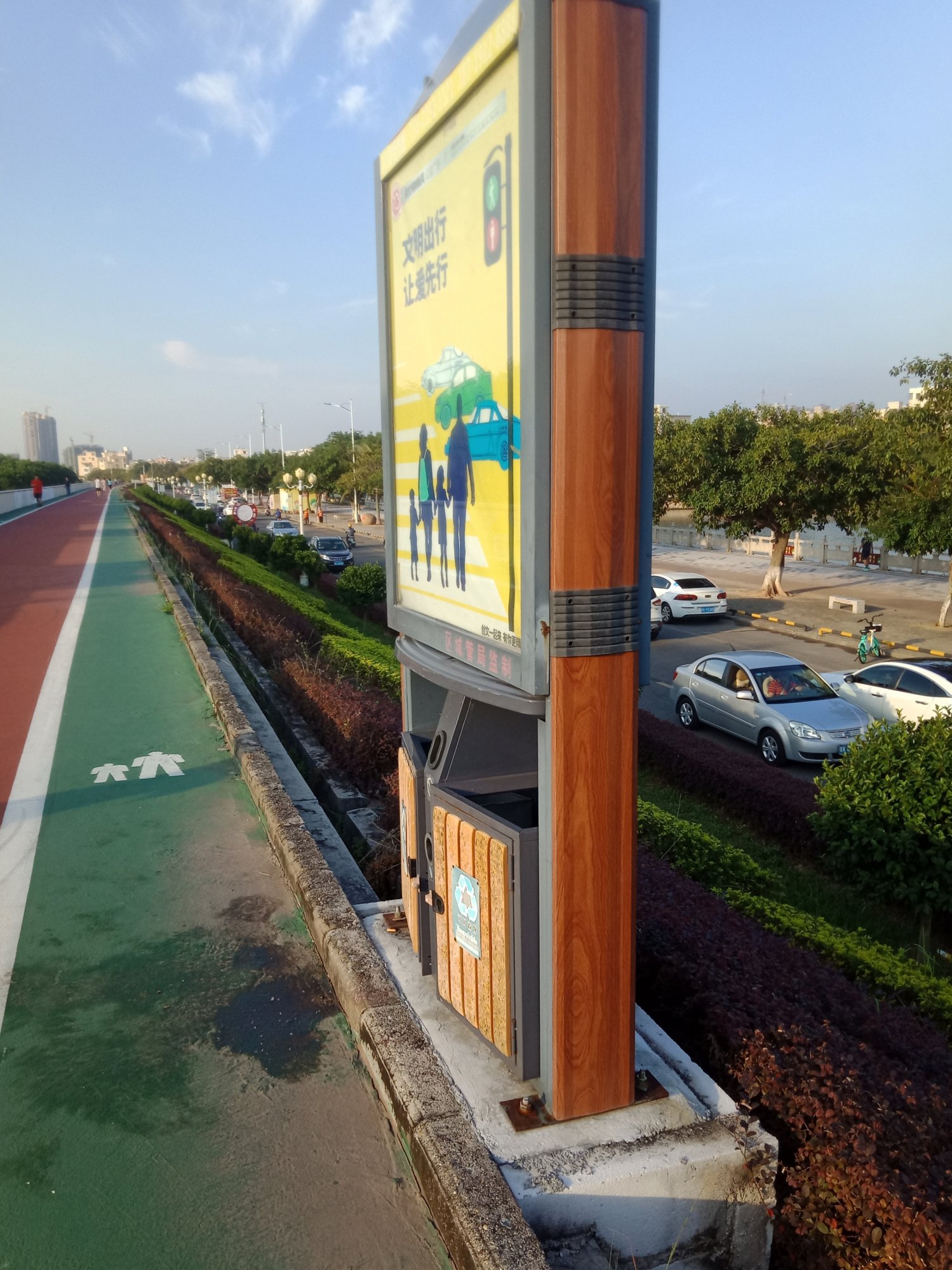 其实在那安装这个广而告之垃圾桶一点都不好看,怎么看,都影响视觉,