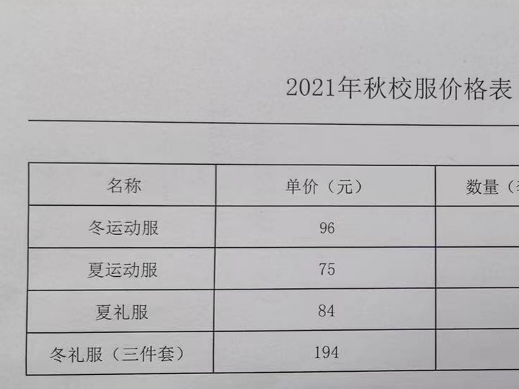 应部分家长的要求,2021秋季校服加订这星期开始,请班主任向家长公开校服价格,在家长自愿确需的原则下,做好各项代记代收工作。另:总务处有校服量身订购表,请来领取。