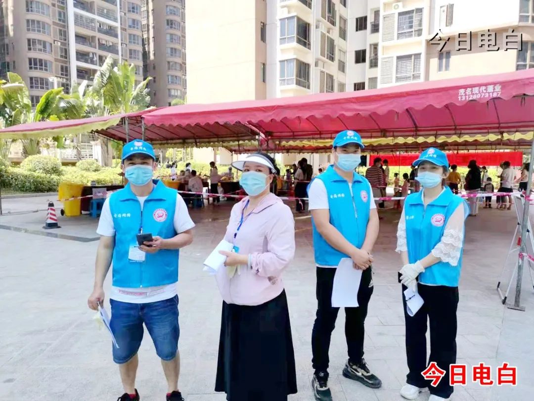 一个个来自电海街道、安乐村委会、小区业主、业主委员会筹备组的党员志愿者、志愿者,身穿红色志愿者服或防护服,从早到晚,受着夜晚的凉意,顶着白天的日晒,忙碌不停。或在维持秩序、维持排队的安全距离,或在指导不熟悉操作手机的待检人员亮码、采集数据,或在关心、帮忙、搀扶老人、行动不便之人,或是与网格员一起挨家挨户通知、动员、扫漏。志愿者们的腿站到累,走到累,家里事,个人事,都放下,大家为了打赢这场抗疫战斗,在这七日五检大筛查中,付出辛苦,洒向全场都是爱。