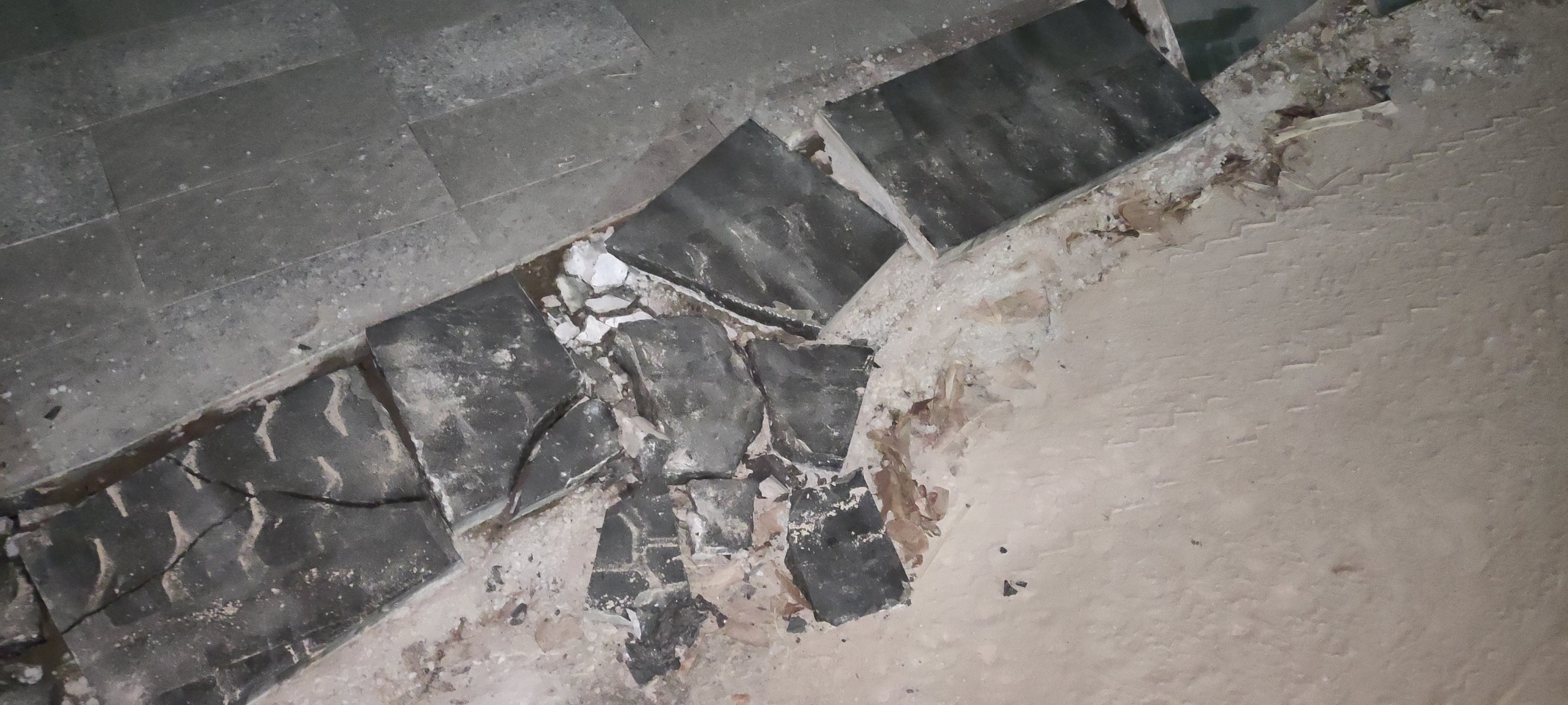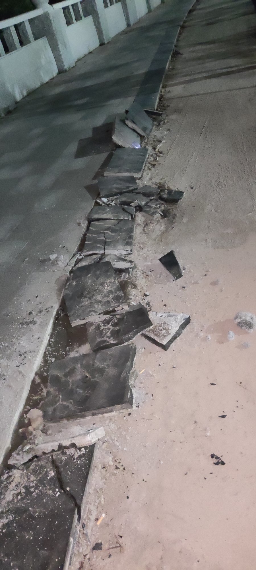 海堤路财富盛世旁的湿地公园,石板砖铺上没几天,就被野蛮施工的载重汽车碾碎了!