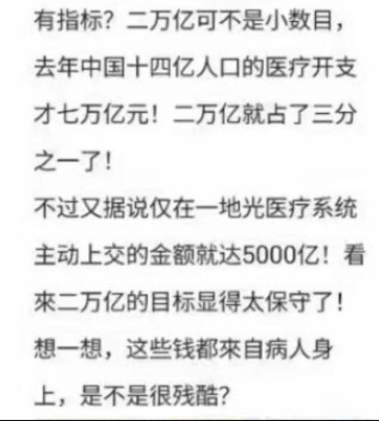 中国医疗系统的腐败是中国人民心中的痛,为了迎合资本的利益,有关部门一直未能痛下决心来解决。三年疫情,中国共产党看到了公办医院医疗系统的巨大作用和看到了全国人民的凝聚力,近来中国南海,台海风云涌动,中国人民解放军已经在公开备战,人民医院将是战时重要的后勤保障,中国军队永远不会忘记朝鲜战争,因为国内无良资本家在军队医疗物资保障方面的腐败对军队的损害所造成的重大人员和物资损失。现在解决医疗系统腐败已是逼在眉目,解决全国人民看病贵看病难的问题,相信这次医疗系统反腐败将是一场硬仗,不但有全国人民的支持,也有医疗系统的医疗工作者的支持和拥护,让那些医疗系统的蛀虫瑟瑟发抖。