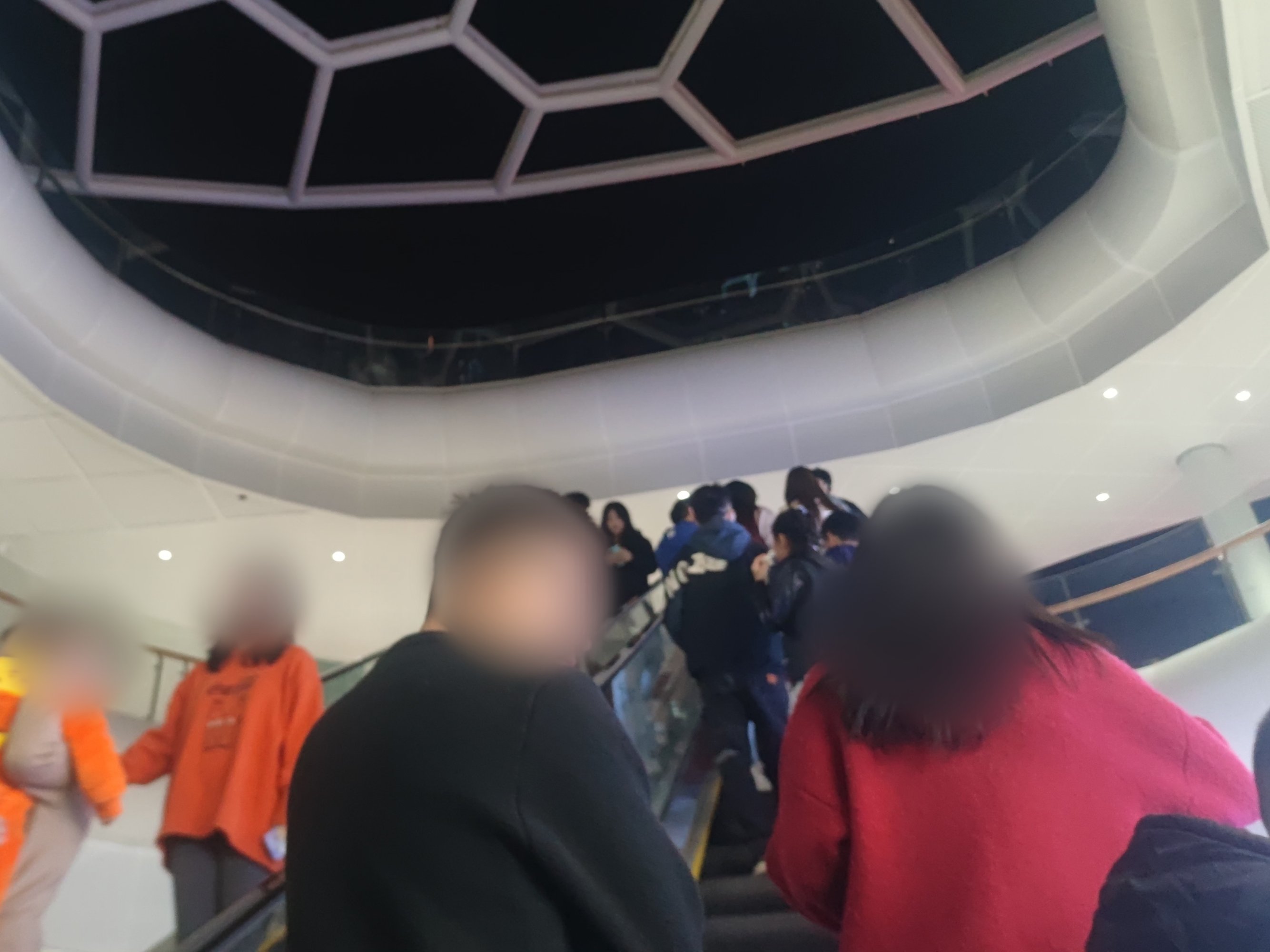 而靠近水东大道这边的广场,人流相对少点,有可能是时间较晚点了或有好多人拥去看表演还是去点印象喝茶还是其它~?