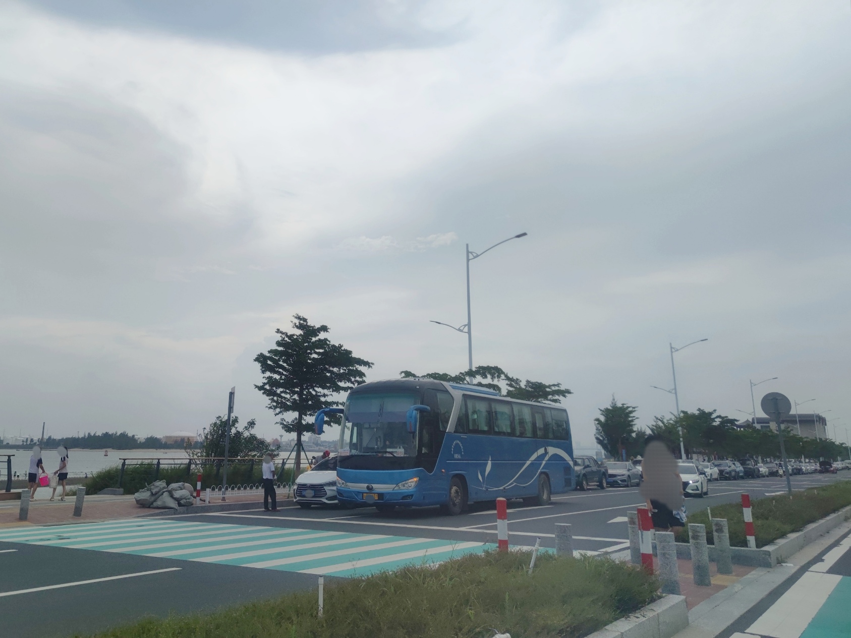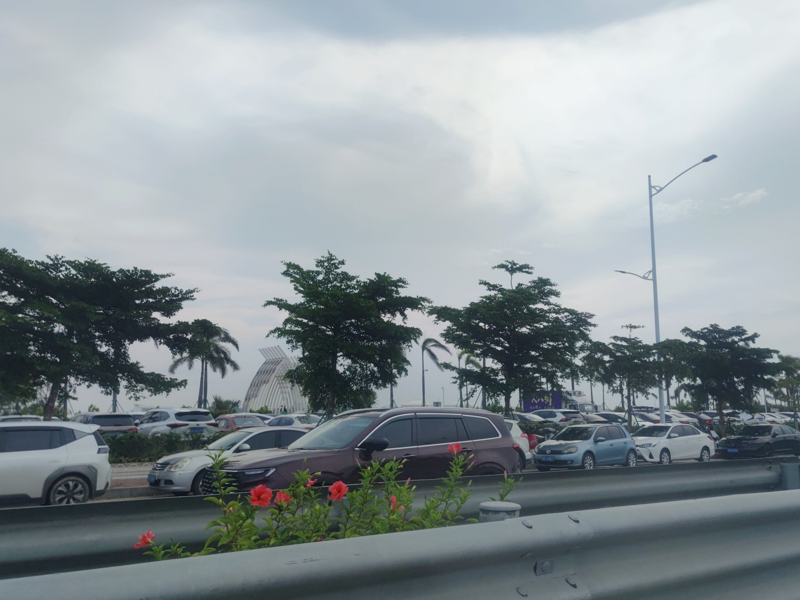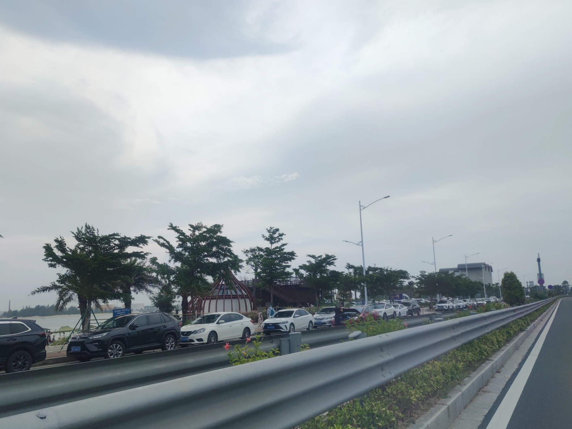 再乘坐车后往前走~好多地方的边路都停满车,诂计要早点过来才能找到停车位?好像感觉这条广东沿海旅游公路逐渐车流量也挺多的?好像感觉青福大桥至马来西葛~沙滩~驿站这等一带??