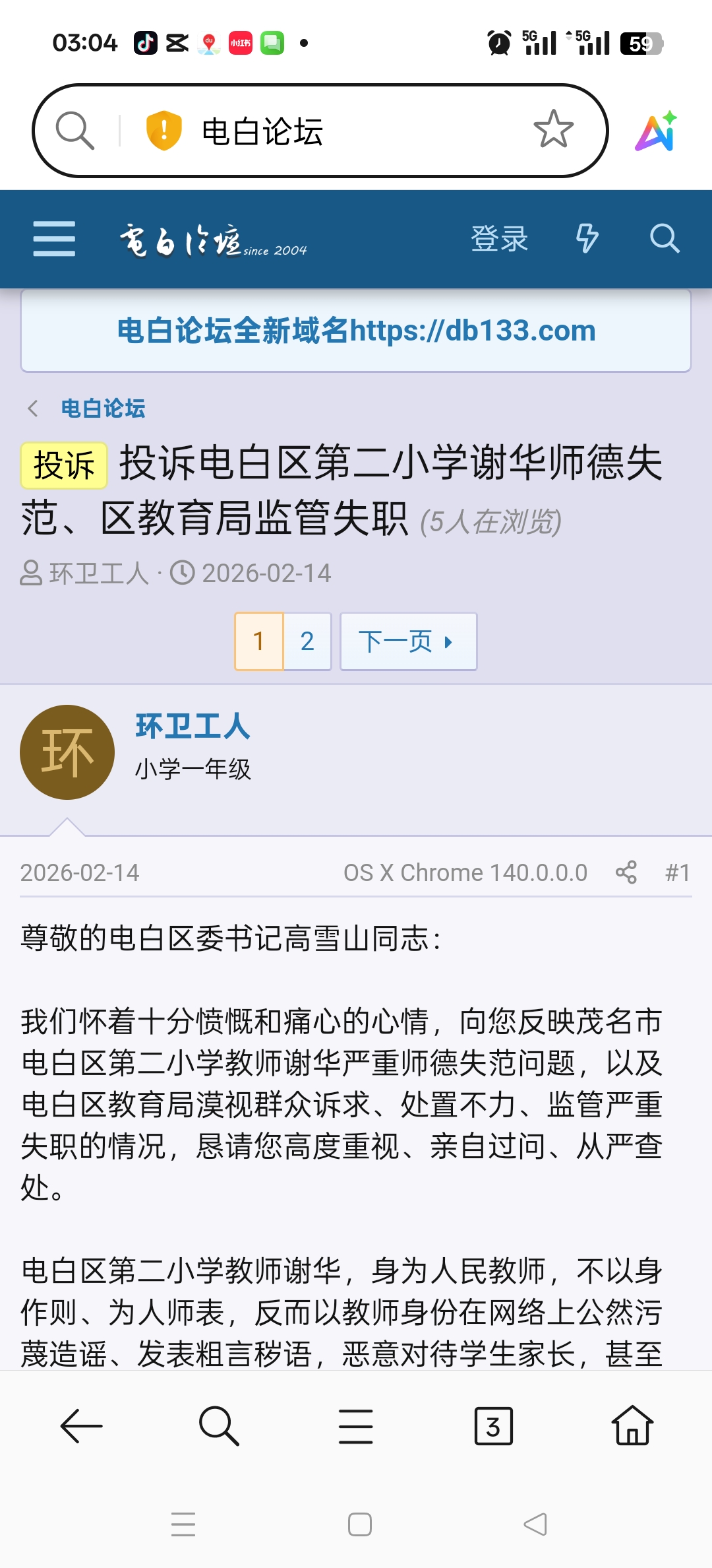小石龟 荣誉主席 注册 2020-09-30 消息 8,289 反馈评分 323 点数 191 年龄 50 性别 男 2026-03-15 Android Chrome Mobile 115.0.5790.168 #1 他们在论坛屏蔽我了,他们不让我看见投诉我的帖子。 环卫工人,一个虚拟ID,居然让你教育局的所有人跪下,你们跪下有理由,我不会跪下有我自己的理由。 图片看得懂就看,看不懂我不说话。 环卫工人,你口口声声说为了电白,为了百姓,你用的下三滥手段,你会是个好人吗?没事,回想自己的父母,回想自己后代,我希望你,看看自己父母,看看自己后代,以后,去当一个人。 附件 Screenshot_2026-03-15-03-01-29-40_439a3fec0400f8974d35eed09a31f914.jpg 623.2 KB · 查看: 163 Screenshot_2026-03-15-03-04-25-20_439a3fec0400f8974d35eed09a31f914.jpg 564.7 KB · 查看: 152 Screenshot_2026-03-15-03-05-06-23_439a3fec0400f8974d35eed09a31f914.jpg 576 KB · 查看: 156