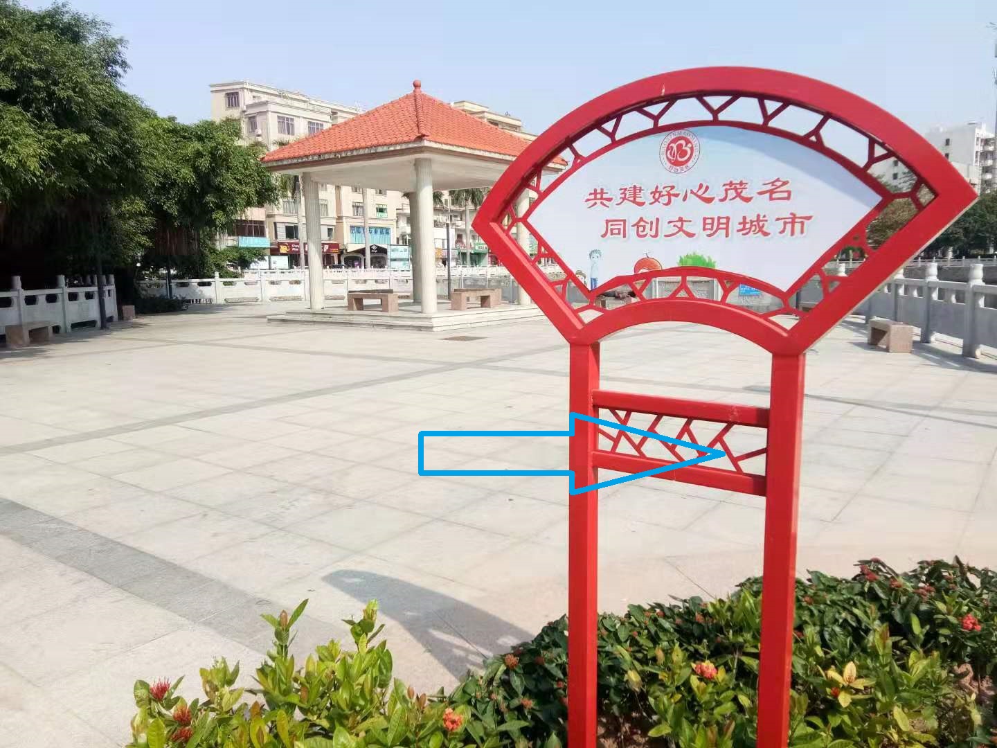 水东西湖凉亭----西亭。历史上水东跃进小学的毕业班集体照片拍摄地点一选在电白旅行社门前,二选在风光旖旎的西湖公园,以前的西湖,湖的北岸是325国道线,沿途种了许多木麻黄树,325国道的北面又是一大片水田、关草田、葵园、鱼苗场,一条人工运河直通沙琅江,如今的西湖已变得今不如昔。