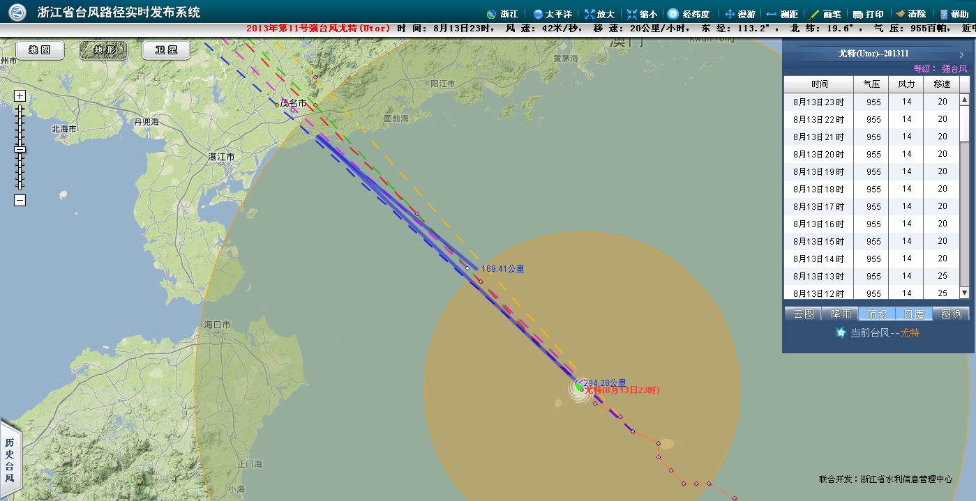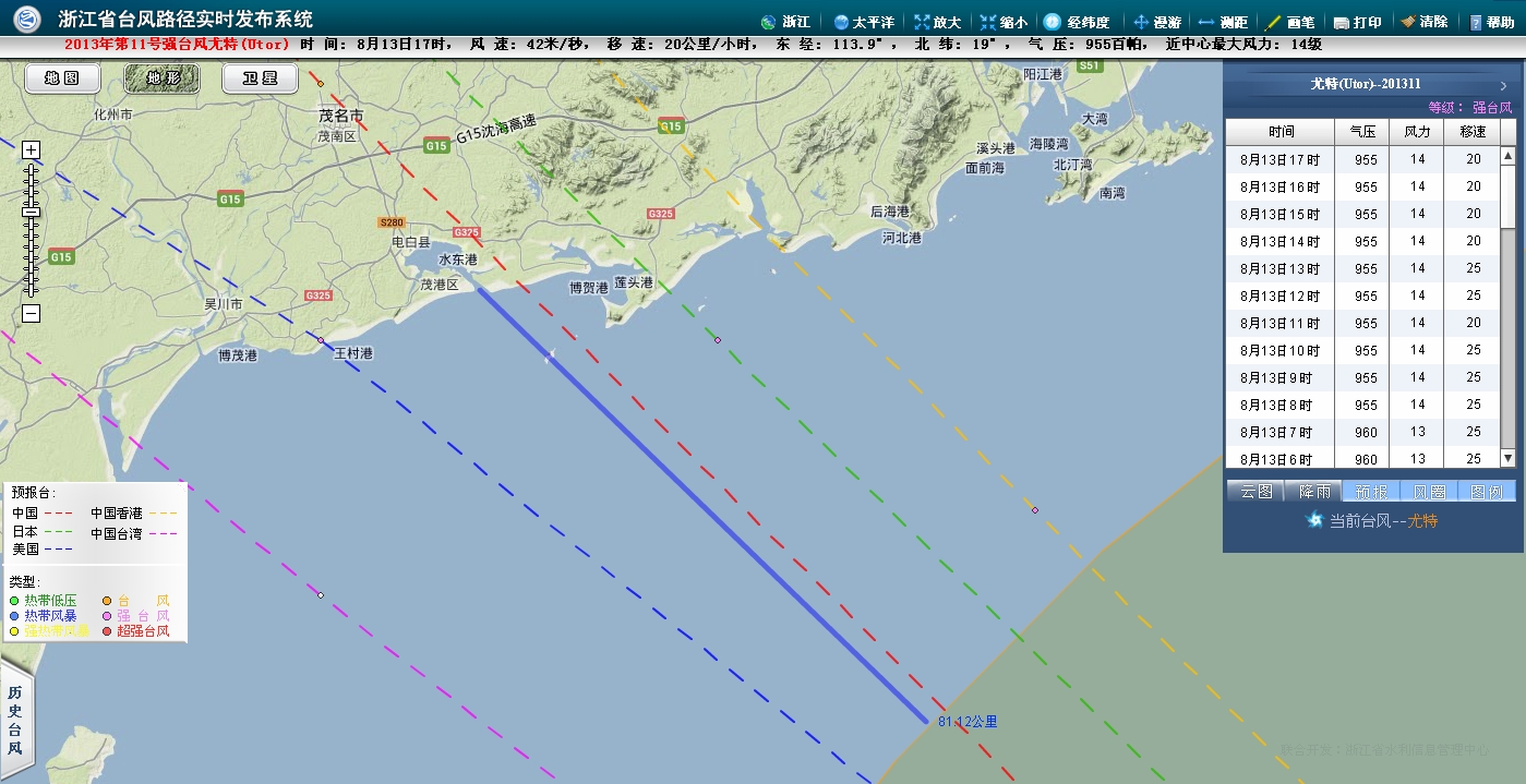 按现在台风的移动速度,10级风圈将在8小时内登陆电白,台风中心将在15小时内进入电白。将受到10级以上狂风肆虐11小时以上,可怕!