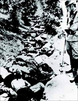 一位在集体大屠杀中的幸存者说:“那时的长江边全是尸体,长江水都是红的!”据中华民国政府1944年开始历时三年的调查中作出的统计,南京大屠杀中被集体屠杀的一共有19万人。