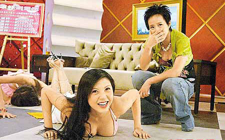 身穿白色的叫做STACY,身高163公分,三围32F,25,36,来头一样不简单,阿姑周游是她的姑婆,戏剧底子让她表演起来更生动。