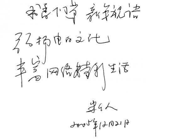 蜜蜂 NULL 版主 注册 2004-10-07 帖子 2,085 反馈评分 5 点数 61 2005-12-23 #16 这里还有梁总在“English Corner”留下的亲笔祝语。。。 http://0668.cc/index.php?showtopic=36345 QUOTE(半个人 @ 2005年11月25日 Friday, 10:48 AM) Happy Thanksgiving! Thank you the same for what you are always doing for us! [attachmentid=57749] [snapback]841885[/snapback] 附件 halfmansign.jpg 680.6 KB · 查看: 404