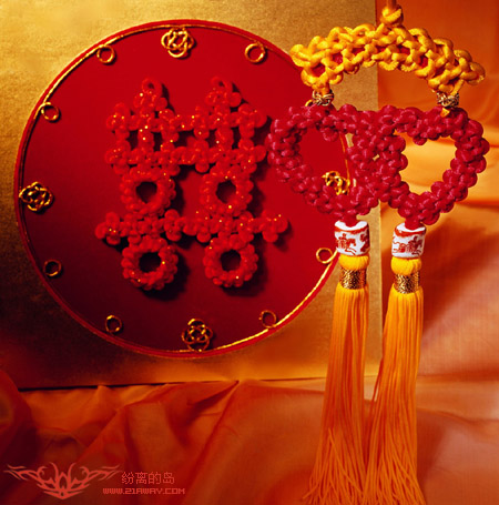 终,于是便有了“结果”、“结局”、“结束”。“同心结”自古以来就成为男女间表示海誓山盟的爱情信物,又如“绣带合欢结,锦衣连理文”,结饰已被民间公认为是达情感的定情之物。而“结发夫妻”也源于古人洞房花烛之夜,男女双方各取一撮长发相结以誓爱情永恒的行为,有诗云“交丝结龙凤,镂彩结云霞,一寸同心缕,百年长命花”就是生动的描写。