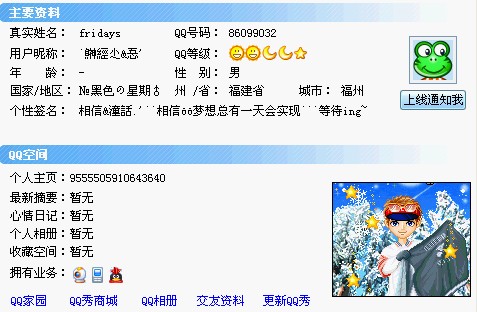 半个人 荣誉坛主 荣誉会员 注册 2004-08-16 消息 7,441 反馈评分 65 点数 71 2005-04-20 #136 不要挂QQ,不可能超过我的。 附件 555.jpg 22.3 KB · 查看: 507