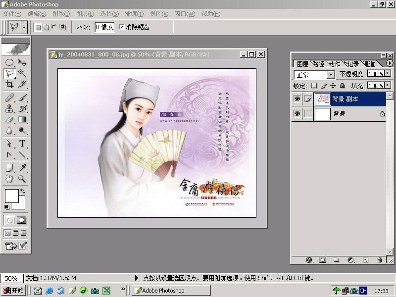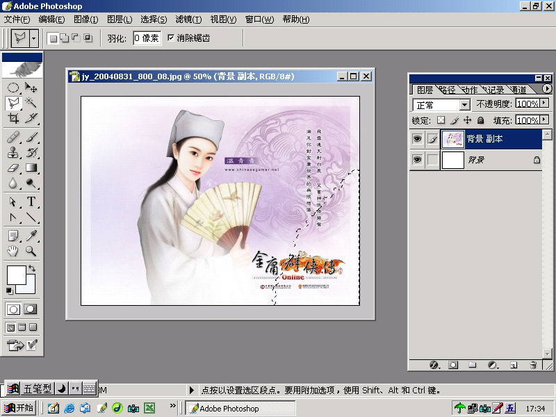 2. 用多边形套索工具画出一个封闭选择范围,并填充白色。
