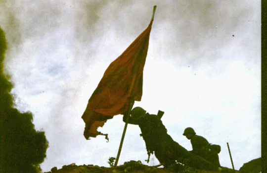 1984年4月28日, 老山主峰。对越反击战时期,经过3天的激战,终于拿下了这个山头。插旗的时候,战士已经牺牲了。如果您看过美军在硫磺岛战役中插旗的照片,您会更加感受到中国军人的伟大。虽然一个鲜活的生命已经结束,但他那不屈的身躯带给人们的不仅仅是震憾!更是一个民族永远不可战胜的意志!