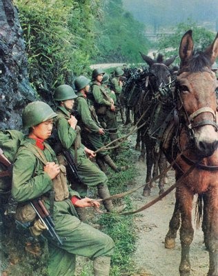在越南山路艰难行军
