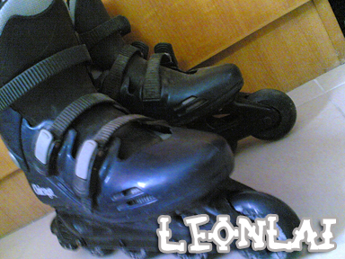 以前玩滚轴时的鞋。。还有一堆护具不知丢哪了。哇哈哈。顺手发上来。。不知自己是什么心理。。。。