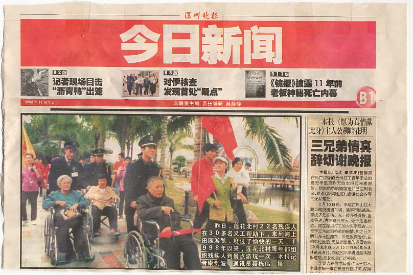 QUOTE(小Q @ 2006年06月09日 Friday, 11:46 PM) 没想到再此在次看到关于丛飞的事迹,想起有篇采访文章中,他躺在病床上,跟自己的老婆说,要求他的爱人把肚子的孩子拿掉,一是怕自己的逝去而耽误爱人将来的生活,二是为能继续资助贵州的失学儿童…… 他的情操,真的不能仅用高尚两个字来形容…… [snapback]1291048[/snapback] 2001年9月,与从飞和残疾人去小梅沙开展助残活动。