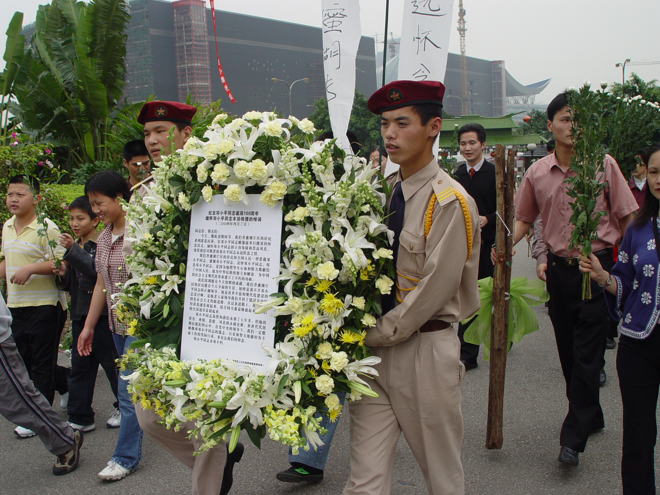 QUOTE(四中乐叔 @ 2006年06月10日 Saturday, 12:30 AM) [snapback]1291108[/snapback] 2004年4月3日,邓小平诞辰100周年,莲花山献花给邓小平。