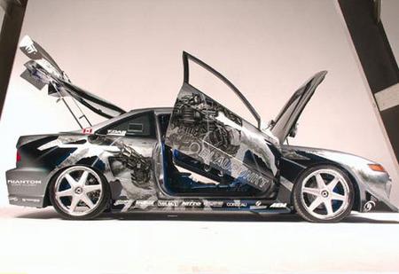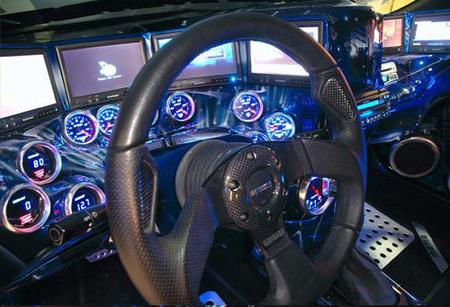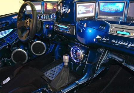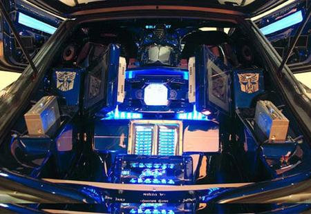 先不提那些BT的发动机、车身和轮胎的改装,这辆由本田1994款Acura Integra LS改装而成的车内安装了数个DVD播放机,TravelPilot导航系统,美国SIRIUS卫星广播接收器和PS2游戏机等等,最强的是车身后部还藏着个变形金刚。引用Engadget的话说,这车就差地对地导弹了,而我要说,这车就差能变形了。国外改装车Fans的资金和动手能力都很BT啊!