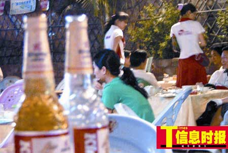 放眼望去,整个场内似乎啤酒妹最忙,两个啤酒妹围着几十张桌子团团转,倒是服务员显得很轻松,因为倒茶、点菜的事基本由啤酒妹代劳了,他们所能做的也就是上菜而已。