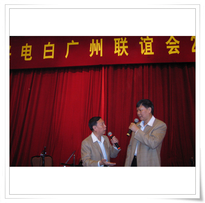 QUOTE(电海白鲨 @ 2007年03月26日 Monday, 10:21 PM) 广州文艺界名人同乡陈丹虹姐弟也参加了,他在博客里说“昨天电白同乡会在迎宾馆举行年会,和丹苗拜见了父亲的大学同学,同乡等众长辈,感触良多. 在演员的休息室见到了钟新宁,卢海潮,黄俊英,李池湘,何宝文,伍燕,宋嘉其,崔国汉等师友” [snapback]1710446[/snapback] 黄俊英,何宝文演相声“猪笼入水”