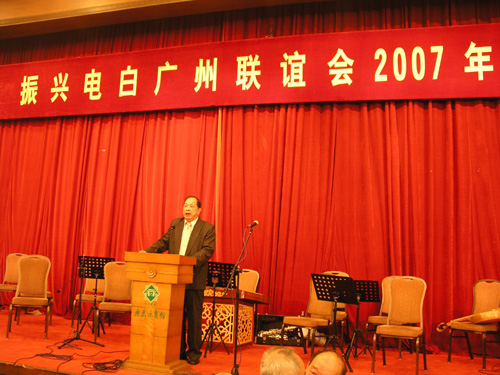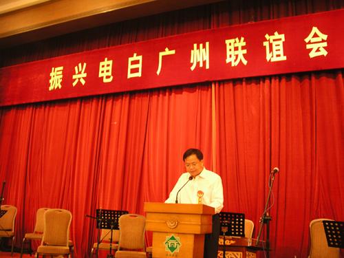 振兴电白广州联谊会2007年年会 -------------------------------------------------------------------------------- www.dbtxw.com 发布时间:2007年03月26日 09时16分 来源:电白同乡联谊网 【电白同乡联谊网】讯:(杨子章、摄影 谭文邦)3月25日下午,一个春光明媚的日子,广东迎宾馆洋溢着一派喜庆的气氛,振兴电白广州联谊会2007年年会在这里举行。杨桐、邵忠、刘寿华、廖寿伦、何冰、苏世景、丁锦文、阮汉、李光、崔真基、崔广德、郑文、崔大洪等政府领导、工商界人士、各地同乡会负责人以及电白籍各界老领导老同志,各界名士贤才将近500人共聚一堂。 本次大会由崔广德主持。刘寿华会长在会上作了工作报告,就联谊会2006年的工作作了详细回顾并提出了2007年的工作设想。 抗非典英雄廖春信、电白县委副书记丁锦文、省委副秘书长杨桐、深圳电白联谊会会长廖寿伦、企业家崔真基等先后在会上作了精彩的讲话。 文艺工作者表演了演奏、歌舞等精彩节目。 本次大会经费由电白县政府、李琼兴、梁钊锐、崔广德、高兆春等单位和个人赞助;郑文、郑龙辉、崔真基、崔大洪等赞助了本次大会文艺演出经费;晚宴啤酒由珠江啤酒集团副总经理李光提供。 这是一次继往开来、共叙乡情、凝聚力量、共谋发展、团结奋进,为建设和谐美好电白群策群力的盛会。