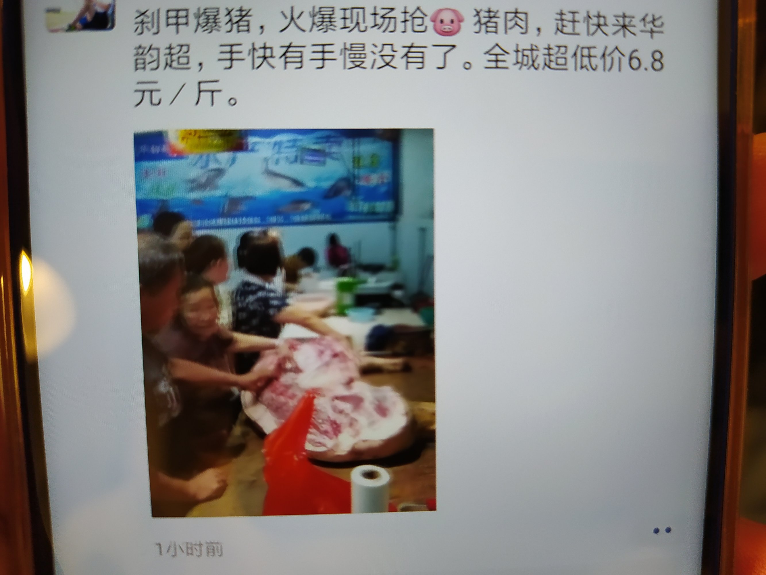 朋友超市(外地的)国庆优惠,平时也就多两块钱斤。还好我们电白猪肉也降了点价,不然只能吃电瓶为生。