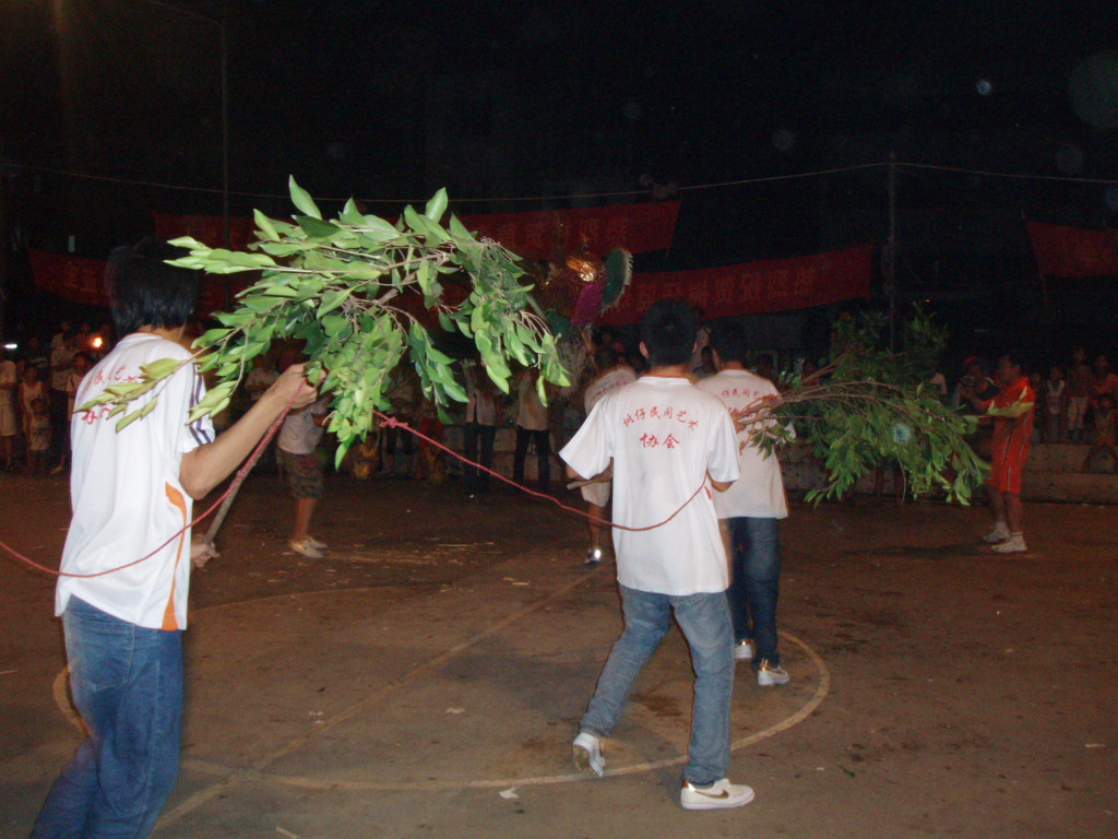 农历七月十四,有幸到树仔镇观树龙舞。据说当年有邪神到树仔作恶,把太阳遮了。群众到关帝庙禀告关帝。关帝上书天庭。天庭派青龙把邪神赶走。于是树仔人有七月十四舞树龙消灾驱邪的习俗。