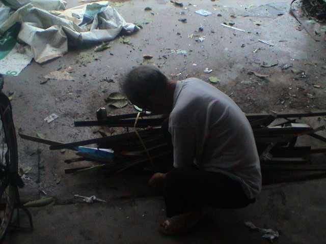 邵啊伯忙碌着收拾角铁
