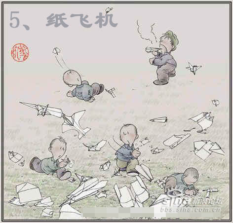 6、纸飞机经常是撕作业本来折的,经常和同学们一起比赛看谁的飞机飞的远。不过那时候折法很单调的,现在已经发展到很多种的折法了。