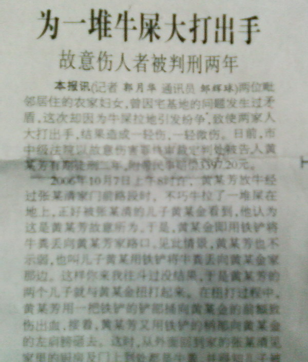 矛盾在先,牛屎只是摧化剂!这标题有问题!