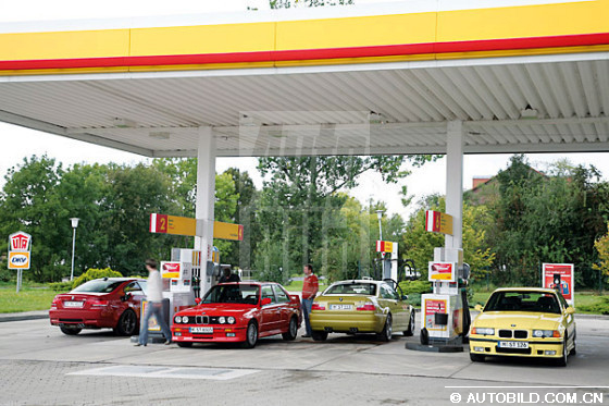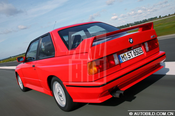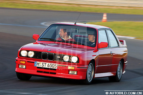我们先来看最新款M3,它的厂家内部编号是E92。它搭载的是一款在M3的发展史上首次出现的V8发动机,最大功率可达420马力,是最早一代M3的两倍多。1986年面世的第一代M3,即E30配备的是只有200马力的2.3升四缸发动机,而且没有采用废气增压技术。我们的测试用车产自1987年,从博物馆里开出来后还能达到195马力,魅力依旧,光彩照人。方头方脑的车身造型、宽大的挡泥板和后导流板使E30在80年代风靡一时。即使用现在的目光来看,充分考虑了人体工程学的内饰设计仍然十分出色。中控台略微偏向驾驶员,所有的按钮都可以发光。可是为什么宝马公司把这么一个好的产品停产了呢?转动点火钥匙,立即就让人忘了宝马引以为豪的iDrive信息控制系统。启动时没有常见的隆隆声,四缸发动机很快进入怠速空转,发出的声音就象微笑一样含蓄。充分的暖车之后,E30在高速公路上可以毫不费力地超过时速200,考虑到测试用车已经比较旧了,我们没有测试是否能达到厂方宣称的最大转速7300。