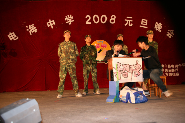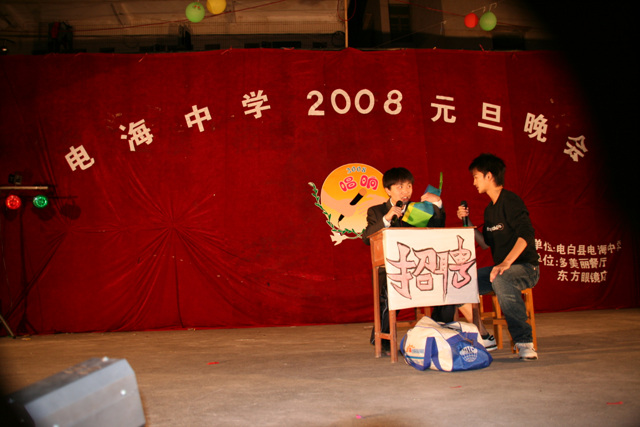 作为一名神秘嘉宾参加了电海中学2008元旦晚会,该晚会是由该校学生自编自演的晚会,节目非常精彩,值得观赏。