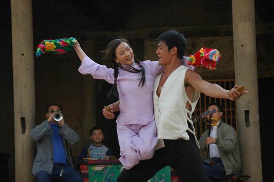 三年后。集上,一个黑汉子转过头来,他是夏至。谷雨苍老了许多,也颓唐了许多。他骑着一辆旧摩托远远过来,背后带着麻明。还是当年演出的那个地方,谷雨戴墨镜襟衣危坐打着响板弹着弦子,台边,夏至和麻明打听着什么。麻明告诉他葵花当天跑了就没有再回来。 “哎――”谷雨一声长音。麻明坐到谷雨身边,抓起弦子弹了起来,那一举手,一投足,一个眼神,一句唱腔和谷雨如出一辙。