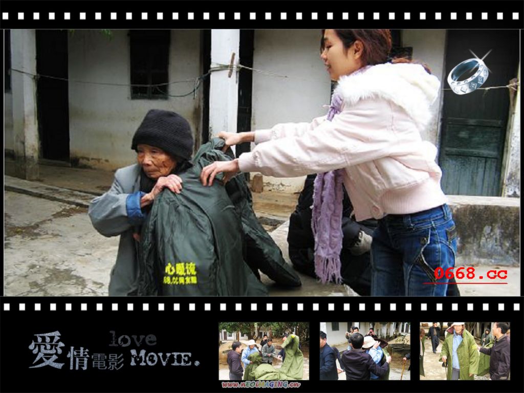 天气严寒,MM热情为老太太穿上大衣御寒