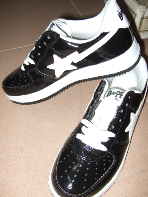 朋友从外地寄回来. 41码的. 由于鞋不合穿. 转售出去. 这鞋是APE的芭比之星. 鞋面是PU皮.橡胶底. 只试穿了下.没穿过出去. 由于运输回来的问题.鞋盒已经有点损坏了. 本地一口价60. 有兴趣的请联系:13413358840