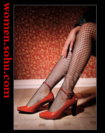 毫无疑问,腿一直是女人最有力的性感武器,热情如火的红色高跟鞋和细孔鱼网袜就是这性感武器的升级工具。