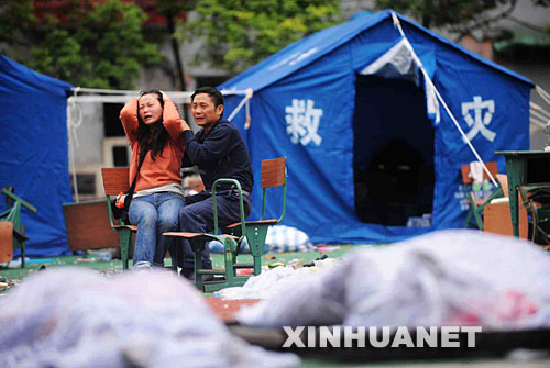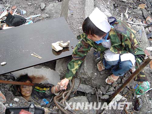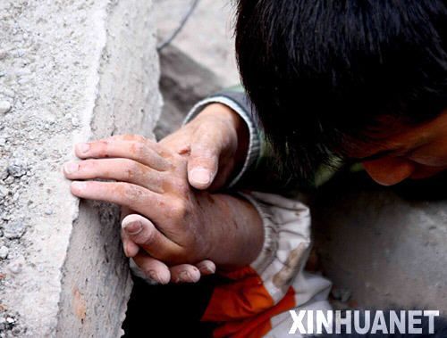 5月15日,四川北川县城一对在地震中失散的姐妹重逢后相拥而泣。当日,前来抢险救灾的子弟兵在汶川地震重灾区北川展开紧张的搜救工作。